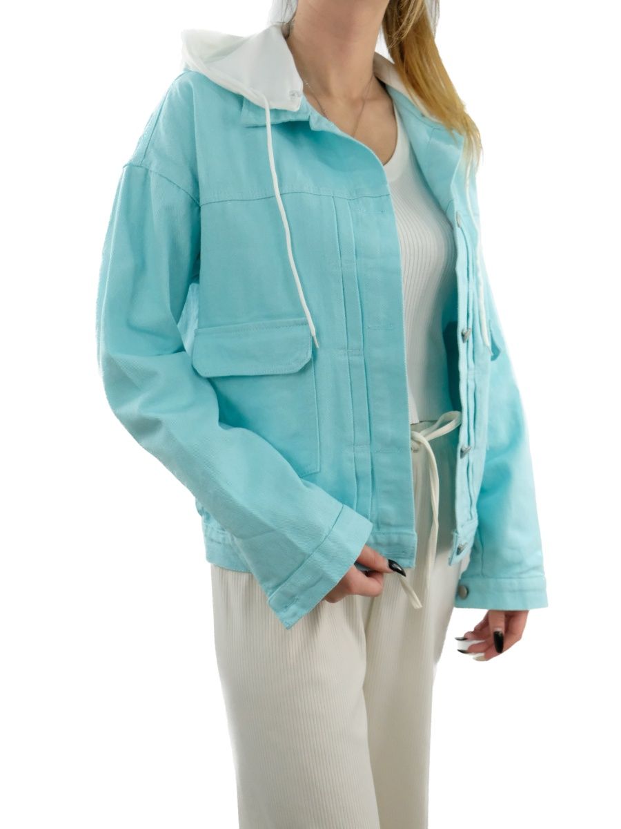 Описание: Джинсовая куртка с капюшоном - это стильный и удобный выбор для летнего сезона. Она выполнена из качественного денима, что гарантирует ее долговечность и стойкость к износу. Однотонный дизайн куртки позволяет легко комбинировать ее с другими элементами гардероба. Капюшон придает куртке уникальный стиль и делает ее более функциональной. Эта модель имеет прямой крой и простой, но элегантный дизайн. Куртка с капюшоном джинсовая летняя, что делает ее идеальным выбором для теплой погоды. Она легкая и дышащая, что обеспечивает комфорт в течение всего дня. Куртка имеет два боковых кармана, что делает ее более функциональной. Она также имеет пуговицы на манжетах и на передней части, что обеспечивает удобство в использовании. Джинсовая куртка с капюшоном однотонная летняя идеально подходит для мужчин и женщин, которые ценят комфорт и стиль. Она легко сочетается с шортами, джинсами, платьями и другими элементами гардероба. Куртка с капюшоном является модным и практичным предметом гардероба, который будет отличным дополнением к вашему летнему стилю. В ней вы будете чувствовать себя уверенно и комфортно в любой ситуации.