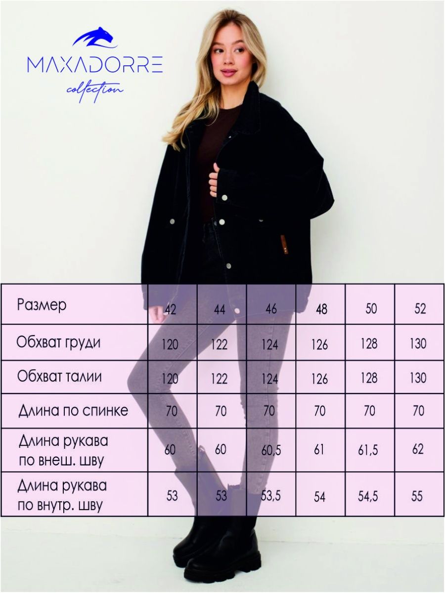 Описание: Джинсовая женская куртка MAXADORRE на пуговицах - трендовая верхняя одежда сезона весна осень лето 2023. Свободная летняя джинсовка выполнена из натурального хлопка подойдёт всем, кто любит комфорт, практичность и стиль. Короткая джинсовка оверсайз кроя одевается поверх любого комплекта и создает законченный образ. Весенняя модная курточка защитит тебя от вечерней прохлады. Весной и летом длинная куртка ветровка из денима идеальна для воплощения образа в стиле casual, офис, а также в более элегантном и женственном стиле. Джинсовая плотная спортивная рубашка oversize на весну отлично сочетается с джинсами, брюками, шортами, сарафанами, платьями и легкими юбками. Молодежная джинсовка отлично подходит для девочки подростка и высоких, и невысоких девушек. Джинсовые куртки также стильно смотрятся и подходят для беременных женщин. Куртку большого размера оценят девушки, которые любят стильный оверсайз. Рост девушки на фото 175см, размер 42, размер изделия 42. Длина по спинке 70 см, обхват груди 120 см, длина по внешнему шву 60 см, по внутреннему 53 см.