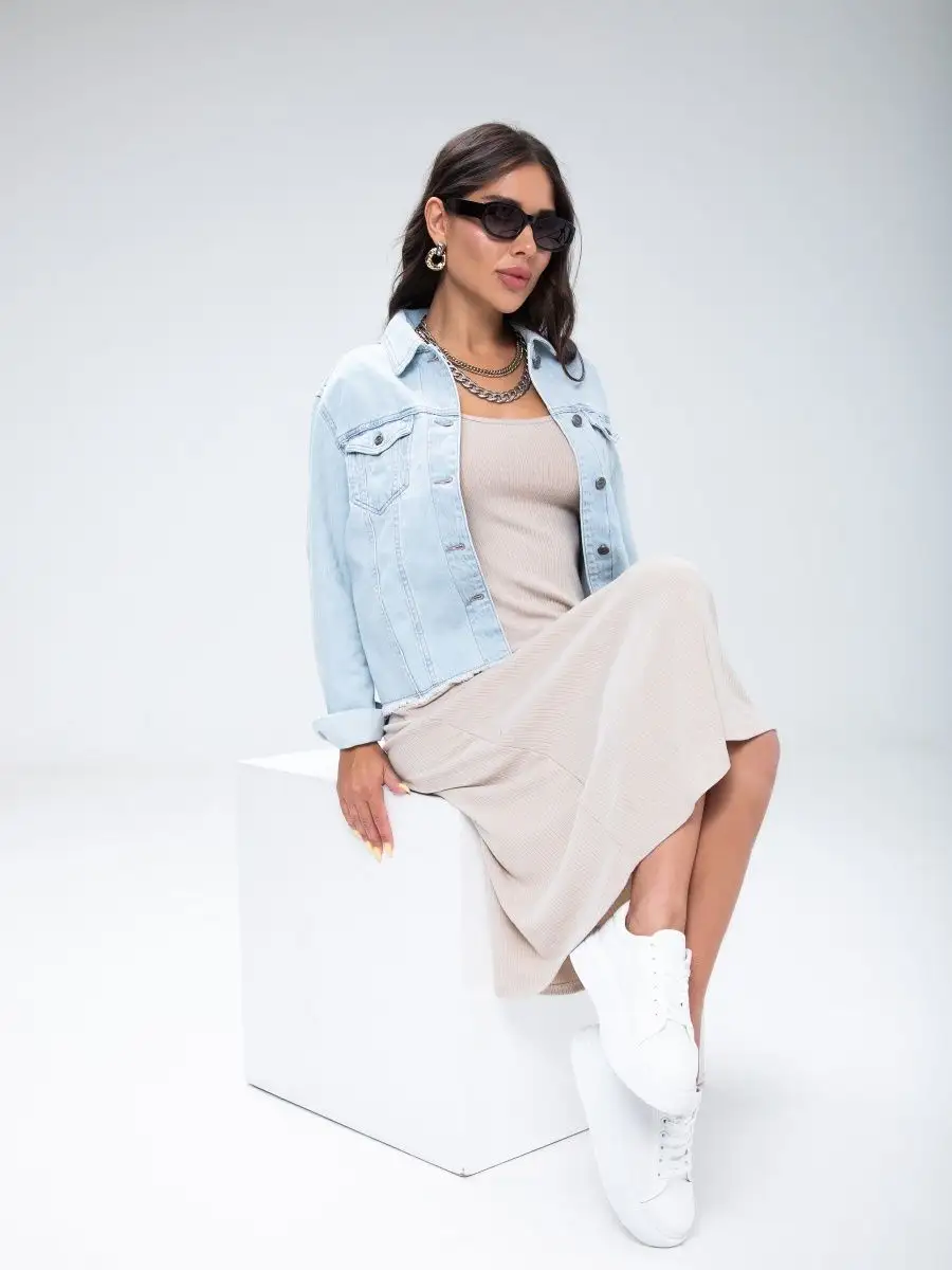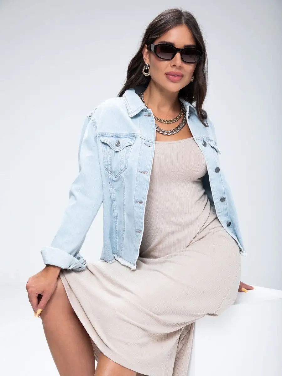 Описание: Уважаемые покупатели, при выборе своего размера, настоятельно рекомендуем обратить внимание на параметры в разделе фото, чтобы выбрать свой размер. Джинсовая укороченная женская куртка от Luxor из денима, хлопок мягкого и прочного. Куртка подчеркивает красоту фигуры, достоинства своей обладательницы, укороченная женская джинсовая куртка заслужила право считаться одной из предметов расширенного базового гардероба модниц. Короткая куртка функциональна, два кармана на груди и прорезные карманы по бокам куртки, укороченную модель можно использовать для воплощения любого стиля, как элегантным леди, так и спортивный стиль, куртка женская имеет простой крой, благодаря которому является универсальной. Короткая женская джинсовая куртка по низу окантована бахромой, стильный вариант верхней одежды из денима для завершения образа. Модная джинсовка комфортна и удобна в повседневной жизни, куртка предназначена как в нормальных размерах, так и большие размеры женской джинсовой куртки. Куртка пиджак сочетается с любой одеждой: с брюками, шортами, юбками, платьями, футболками, кроп топами, рубашками. Базовая классическая курточка жакет без принта, светло голубого цвета, идеально подойдет для женщин и девушек, девочек в школу с любым типом фигуры. Светлая летняя, осенняя легкая ветровка со спущенным плечом, спущенной линией плеча отлично дополнит как повседневные образы, так и романтичные или спортивные. Создавайте свои модные образы вместе с нами!
