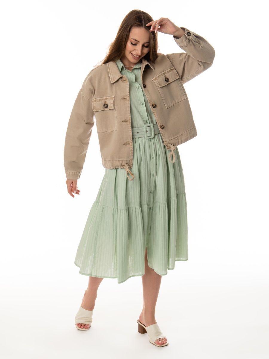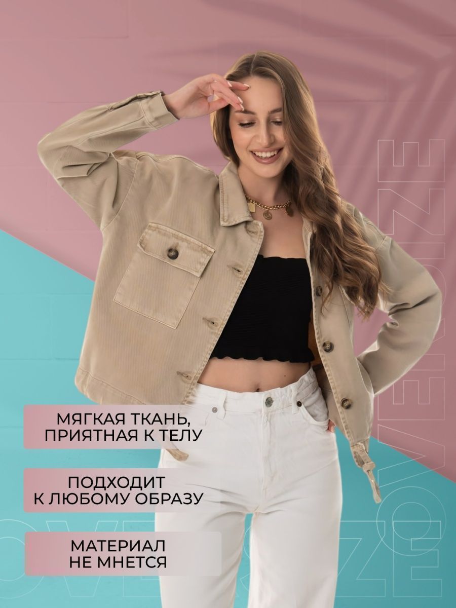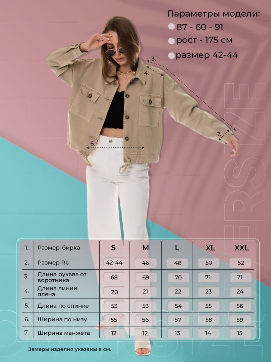 Описание: ДЖИНСОВАЯ ВЕТРОВКА ПРЕМИУМ КАЧЕСТВА ОТ ТОПОВЫХ СТИЛИСТОВ. Модная и практичная джинсовая женская куртка-рубашка с накладными карманами на пуговицах станет незаменимым предметом верхней одежды в вашем гардеробе на летний период и раннюю осень. Эта укороченная ветровка оверсайз (oversize) выполнена из натурального хлопка хб премиум качества и имеет прямую свободную линию кроя, что делает ее удобной и комфортной как для активного отдыха и спорта, так и для повседневной носки и свиданий. Отличный выбор для тех, кто ценит экологичность и натуральность материалов. Дышащая мягкая ткань – плотный хлопковый деним не наносит вреда окружающей среде и не вызывает аллергии. Джинсовка подойдет для любого возраста и типа фигуры, так как ее длину и посадку можно отрегулировать с помощью завязок. Также эта модель жакета со спущенной линией плеч и длинным полноразмерным рукавом, что добавляет нотку лаконичности и классического стиля этой современной молодежной базовой вещи. Блейзер выполнен в трендовом стиле карго, он идеально подходит для подростков, женщин всех возрастов, а также будущих мам и полных девушек. Короткий джинцовый пиджак подчеркнет вашу индивидуальность, а также защитит от ветра прохладными вечерами. Эта легкая и тонкая курточка сафари идеально подойдет для тех, кто ценит классику и комфорт. Винтажный пыльник не стесняет движений и позволяет чувствовать себя свободно и уверенно. Светлые универсальные оттенки модели позволят сочетать ее с любыми элементами одежды и создать свой уникальный образ. Всего за несколько кликов вы можете приобрести эту джинцовку и стать самой модной и стильной девушкой в тренде весны 2023 года.