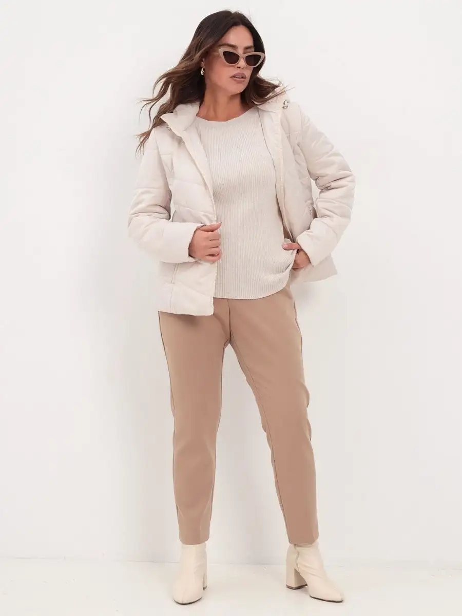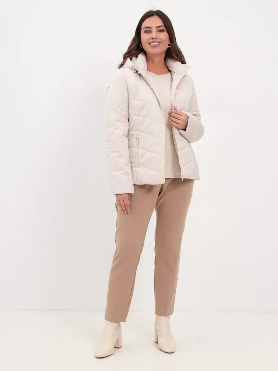 Описание: Женская куртка стеганая демисезонная на молнии, со съемным капюшоном, прорезными карманами на замочках. Приталенный базовый силуэт и декоративная стежка помогают скрыть недостатки и выгодно смотрятся на фигуре plus-size (плюс сайз). Универсальный и теплый современный предмет гардероба для женщин защитит от ветра и измороси благодаря ветрозащитной ткани и влагонепроницаемой пропитке. В легкой утепленной модели применен синтепон 100 г/кв.м. Наполнитель идет цельным полотном, за счет этого не оседает книзу, как кусковой. Изделие можно стирать в автоматической машинке в режиме бережной стирки. Модель представлена в больших размерах для холодной осенней, ранней весенней погоды, еврозимы и прохладного горного лета с температурой от 0 до +15 градусов. Указанная температура комфорта может зависеть от индивидуальной восприимчивости к холоду. Укороченная куртка станет отличным решением для будущих мам. Свободная спортивная курточка - лучший выбор для активного отдыха и туризма, бега, прогулок, так как не ограничивает движений. Прекрасно подходит для полненьких девочек подростков, девушек и женщин с ростом 160-172см, для дам в возрасте под любую комплекцию, а также органична для беременных. С ней можно носить шерстяные толстовки, худи и толстые кофты. Мы будем признательны, если Вы оставите отзыв о нашей верхней одежде! Благодаря Вам мы становимся лучше!