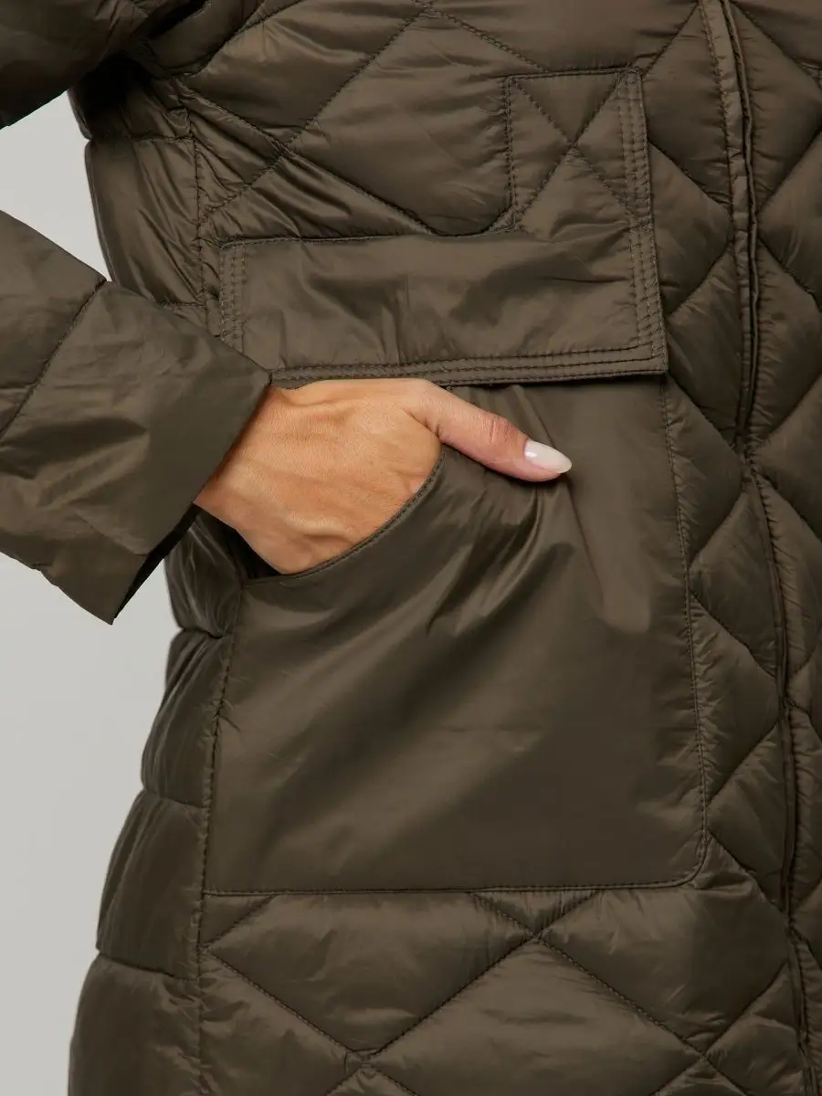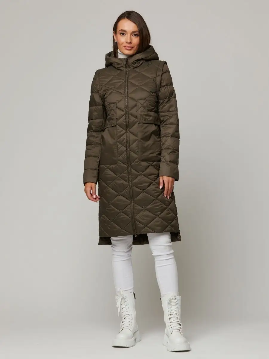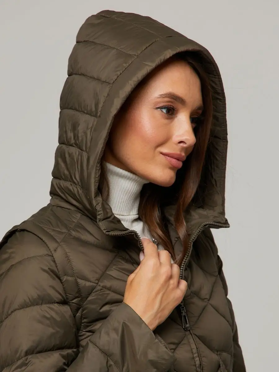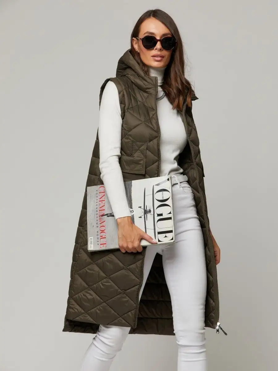 Описание: Стеганая куртка женская прямого кроя с отстегивающимися рукавами от Ariana Fashion - это модная женская одежда, которая трансформируется в жилет с помощью молнии на рукавах. Куртка демисезонная женская удлиненная до колена из стеганой ткани с воротником стойкой, переходящим в капюшон. Куртка женская весна с капюшоном удлиненная имеет молнию спереди и накладные карманы по бокам. Наполнитель куртки женской осенней удлиненной био-пух обладает несравненной лёгкостью и теплом. Верхний материал имеет влаго- и ветрозащиту. УВАЖАЕМЫЕ ПОКУПАТЕЛИ, ОБРАТИТЕ ВНИМАНИЕ, ЧТО РАЗМЕРЫ 52-58 МАЛОМЕРЯТ НА 2 РАЗМЕРА. РАЗМЕР НА ИЗДЕЛИИ 6XL БУДЕТ СООТВЕТСТВОВАТЬ 54 РОССИЙСКОМУ РАЗМЕРУ. В БОЛЬШИХ РАЗМЕРАХ БЕЖЕВОГО ЦВЕТА 2XL (50) - 6XL (58) МЫ ИЗМЕНИЛИ ФУРНИТУРУ И ДОБАВИЛИ ШНУРОК-УТЯЖКУ, ФОТО ДОБАВЛЕНО В КАРТОЧКУ. Куртка женская весна 2023 имеет большие размеры и подойдет как стильная верхняя одежда для полных женщин. Куртку удлиненную женскую весна можно носить весной как куртка женская весна удлиненная с капюшоном, в межсезонье как куртка демисезонная женская удлиненная или как куртка женская весна с капюшоном демисезонная, зимой и осенью как куртка удлиненная женская осень и куртка утепленная женская. Комфортная температура для носки куртки длинной женской весна от 0 до 15 градусов. Жилет удобно брать с собой в дорогу или использовать в качестве дополнительного греющего слоя под пальто. Также вы можете носить жилетку самостоятельно сочетая его с разными стильными образами: с худи, спортивным костюмом или длинным трикотажным платьем. Легкая куртка женская отлично подойдет девочкам подросткам как куртка молодежная демисезонная и подростковая куртка, а также девушкам и женщинам как трендовая куртка или куртка женская осень длинная. Куртка женская стеганая весна с капюшоном станет незаменимой вещью в гардеробе. Куртка представлена в нескольких цветах как бежевая куртка, черная куртка, серая куртка и куртка хаки женская. Одежда больших размеров куртка весенняя женская больших размеров, куртки женские демисезонные большие размеры одежда для беременных и кормящих куртка женская осенняя больших размеров курточка женская безрукавка женская жилет женские куртки и жилеты куртка удлиненная стеганная куртка жилетка, куртка женская весна с капюшоном демисезонная, жилетка женская удлиненная