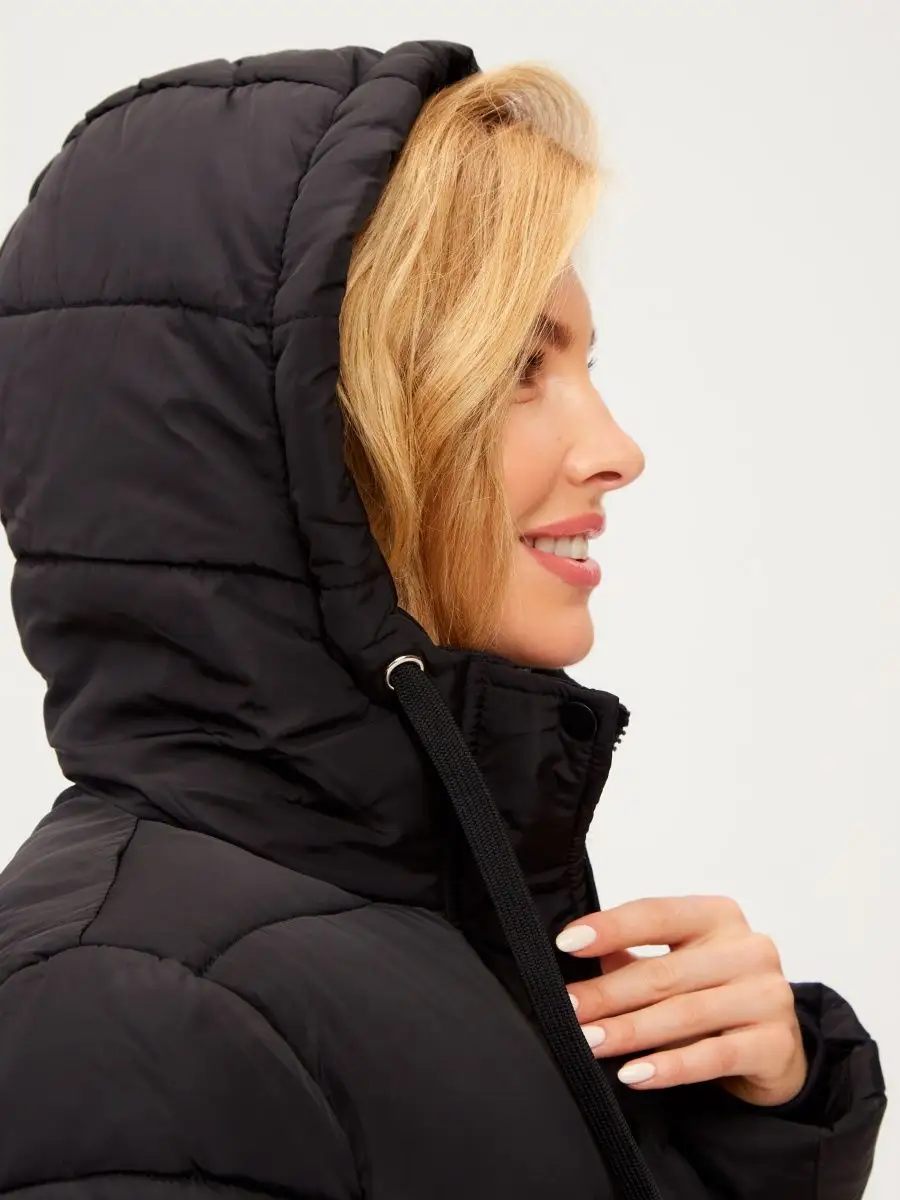 Куртка удлиненная ниже колена женская с капюшоном