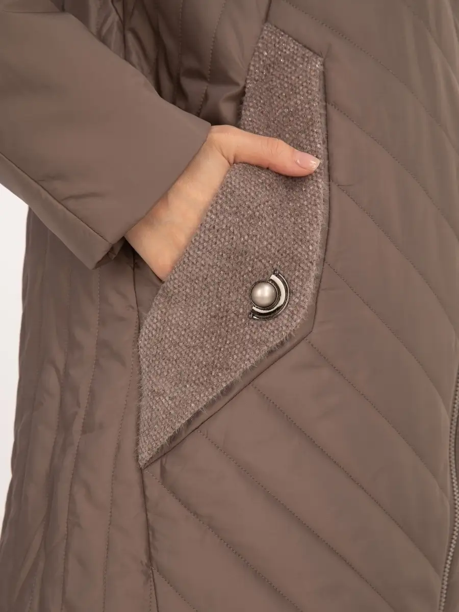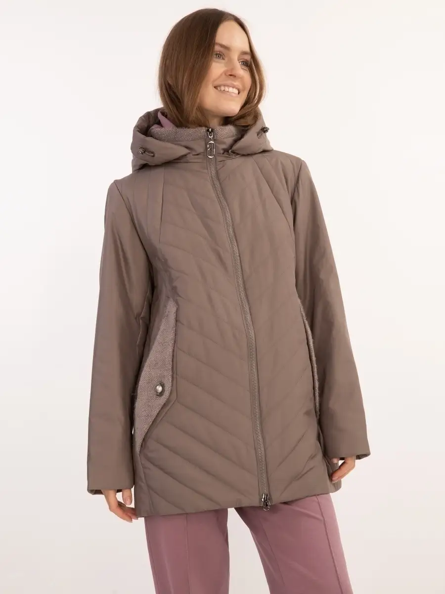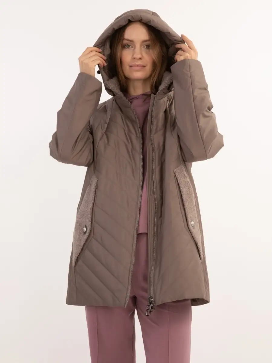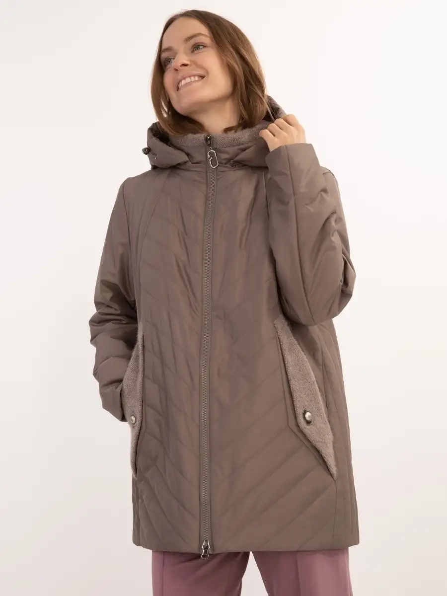 Описание: Универсальная женская куртка на легком синтепоне больших размеров от 50 до 60 подойдет для крупных и полных, беременных женщин и в послеродовой период. Стильный и красивый предмет гардероба для женщин на весенне-осенний период и межсезонье. Интересный дизайн за счет комбинированного стеганого пошива в елочку полоску, а также вставок из меха эко альпаки на воротнике стойке и карманах. Мягкая и удобная теплая куртка легко стирается в машинке, быстро сохнет и не доставит особых хлопот в уходе. Съемный капюшон, переходящий в воротник, надежно защитит от назойливого ветра, осадков и непогоды переменчивой весной и холодной осенью. Глянцевая ткань с ветро и влагоотталкивающей пропиткой. Свободный крой полуприлегающего фасона гарантирует безупречную посадку и свободу движений. Светлая, темная, голубая бирюзовая или кофейная куртка станет желанным гостем вашего гардероба, благодаря тому что в ней совместились такие важные качества, как комфорт и элегантность. Длинная или удлиненная, средней длины, выше колен и ниже бедра, классическая модель превосходно сочетается с другими предметами гардероба. Куртку на утеплителе рекомендуем носить в диапазоне от 0 до +15 градусов. Piomino - хорошее качество по приятным ценам на каждый день для себя любимой!