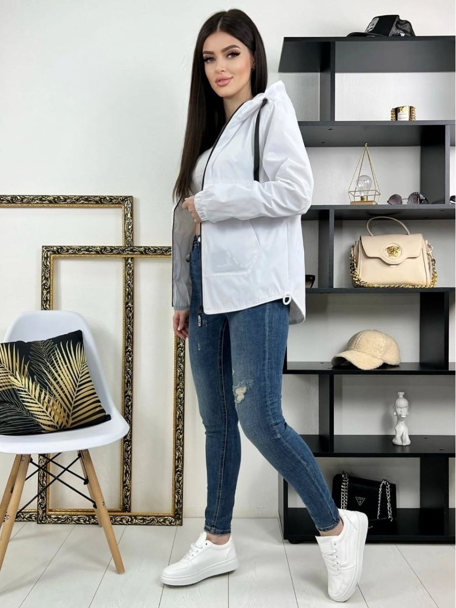 Описание: В гардеробе каждой модницы должна быть легкая женская куртка-ветровка. Непромокаемая, непродуваемая, стильная - эта женская куртка станет настоящей находкой для тех, кто стремится выглядеть хорошо в любую погоду. Для похода и туризма прекрасно подойдет спортивная ветровка как тактическая одежда. Это незаменимый атрибут для бега или велоспорта, прогулок, активного отдыха. Свободный крой модели подойдет для беременных женщин. Женская ветровка с капюшоном послужит как дождевик. Ветровка женская больших размеров понравится обладательницам пышных форм. А современный дизайн и модный крой ветровки, подойдет для девочек и подростков. С этим товаром ищут: джинсовая куртка, джинсовка, куртка женская весенняя, верхняя одежда, кожаная куртка, ветровка женская летняя, куртка демисезонная для девочки, пуховик, кожанка, куртка кожанная женская, куртка рубашка стеганая женская,куртка зимняя женская, куртка осенняя женская, куртка бомбер женская, куртка осень женская, дождевик женский с капюшоном.