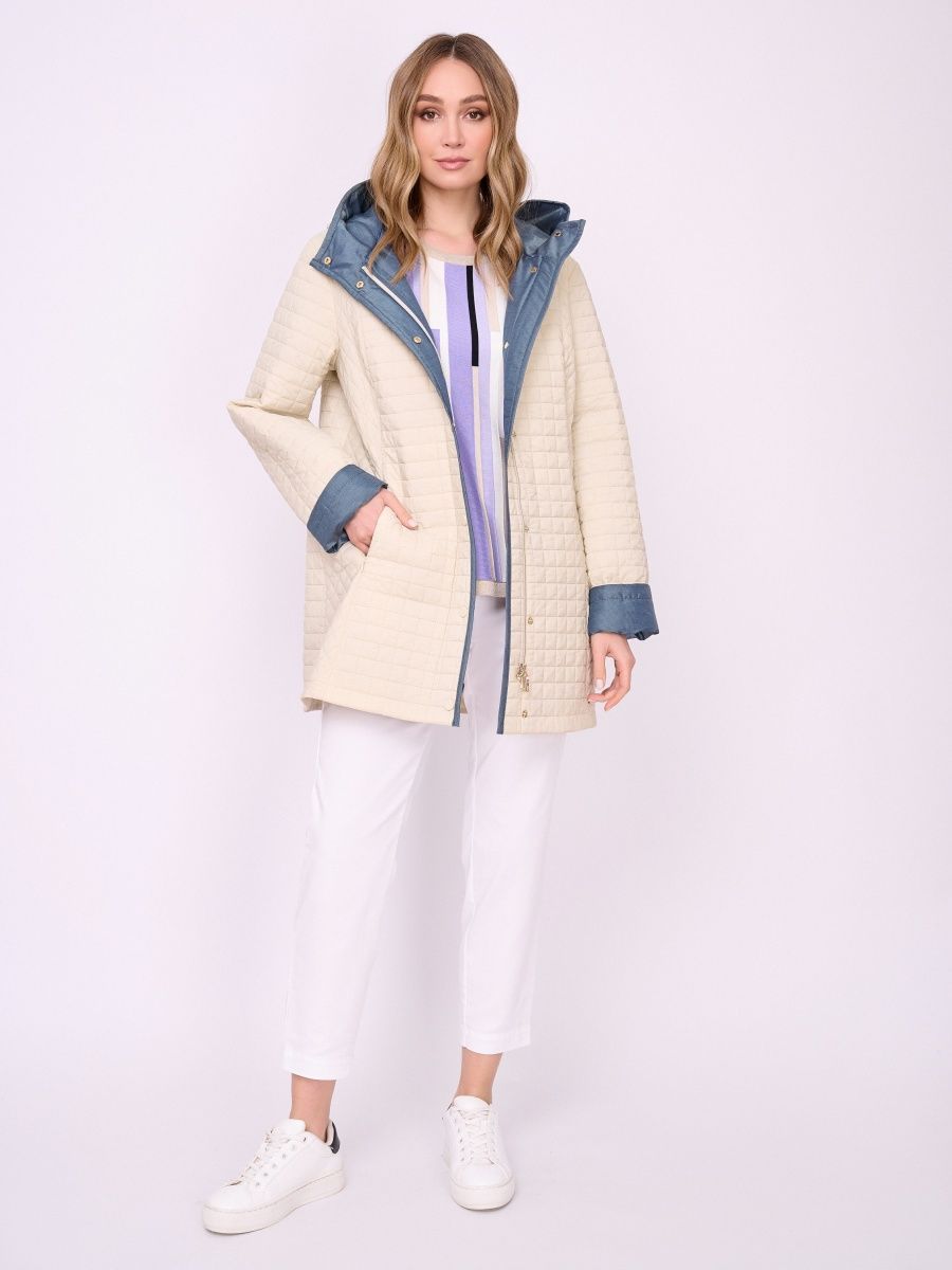Описание: Полуприталенная стеганная утепленная куртка на молнии, на кнопках, с несъемным капюшоном, с длинным рукавом, с карманами в шве. Представлена в светло-бежевом и в черном цветах. куртка женская весна, бомбер женский, куртка женская, ветровка для девочки, куртка, franco vello, franco velo одежда для женщин, итальянская одежда для женщин