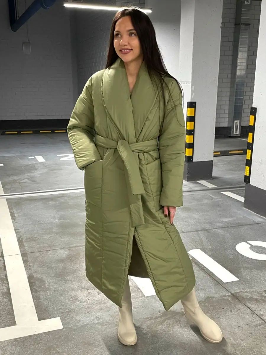 Описание: Пуховик женский зимний на запах бренда Balabon - незаменимая вещь каждой женщины этой зимой. Данная модель имеет еще одно название "одеяло", которое сейчас на слуху у всех представительниц женского пола. Осенний пуховик-одеяло называется так, потому что не имеет элементов застежки, только ремень. Главной особенностью длинной демисезонной куртки является то, что он закрывает абсолютно все части тела, не давая холодному ветру проникнуть. Верхняя одежда для девочек длиной ниже колена и объемными теплыми рукавами. Парка женская зимняя легкая свободного кроя с поясом — это идеальное решение выглядеть стильно и элегантно. Теплый плащ имеет английский дутый воротник без капюшона и боковые большие врезанные карманы, что добавляет изящности верхней одежде. Стеганое пальто зимнее выполнено из премиальной водоотталкивающей и непродуваемой ткани. Утепленные пальто для женщин подойдут для повседневной носки на работу или для прогулок с детьми. Тренчкот женский удлиненный - универсальная модная вещь, которую можно сочетать как с джинсами или классическими брюками, так и с платьем или юбкой. Женская одежда на синтепоне размера оверсайз oversize без принта. Отлично будет смотреться на фигуре любого размера и на беременных, так как модель идет как халат на поясе. Полупальто женское утепленное рекомендовано при температурном режиме от +5 до -25.