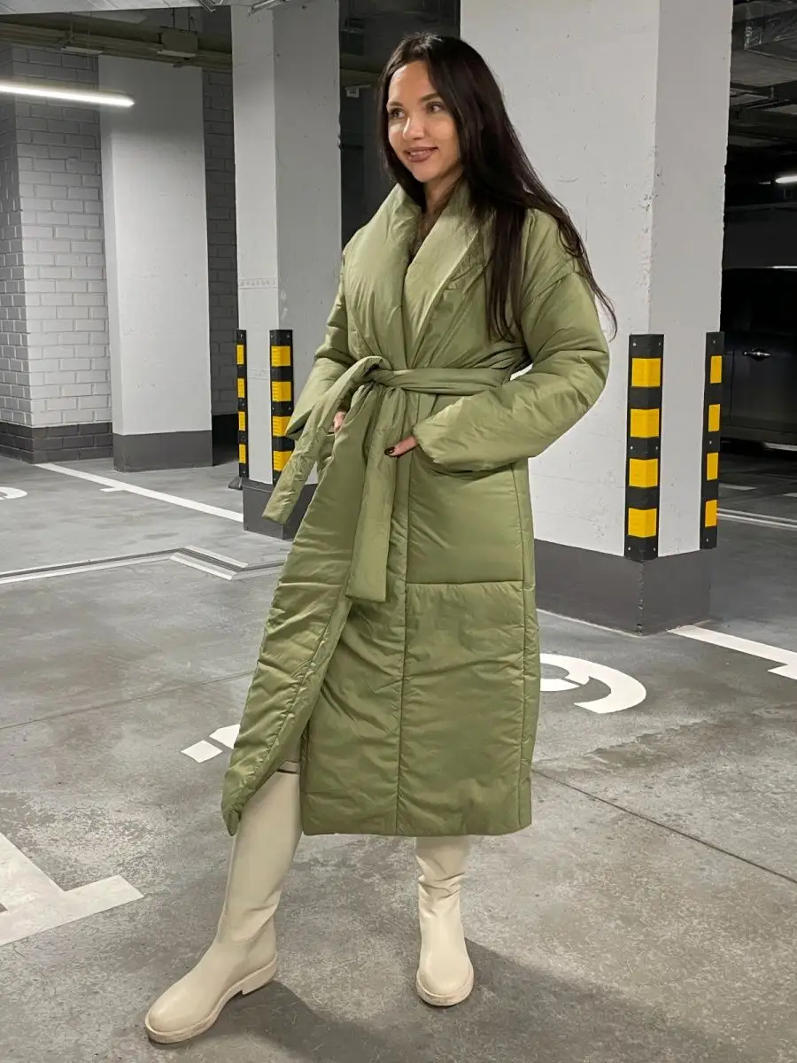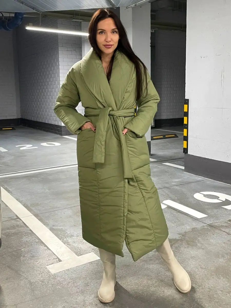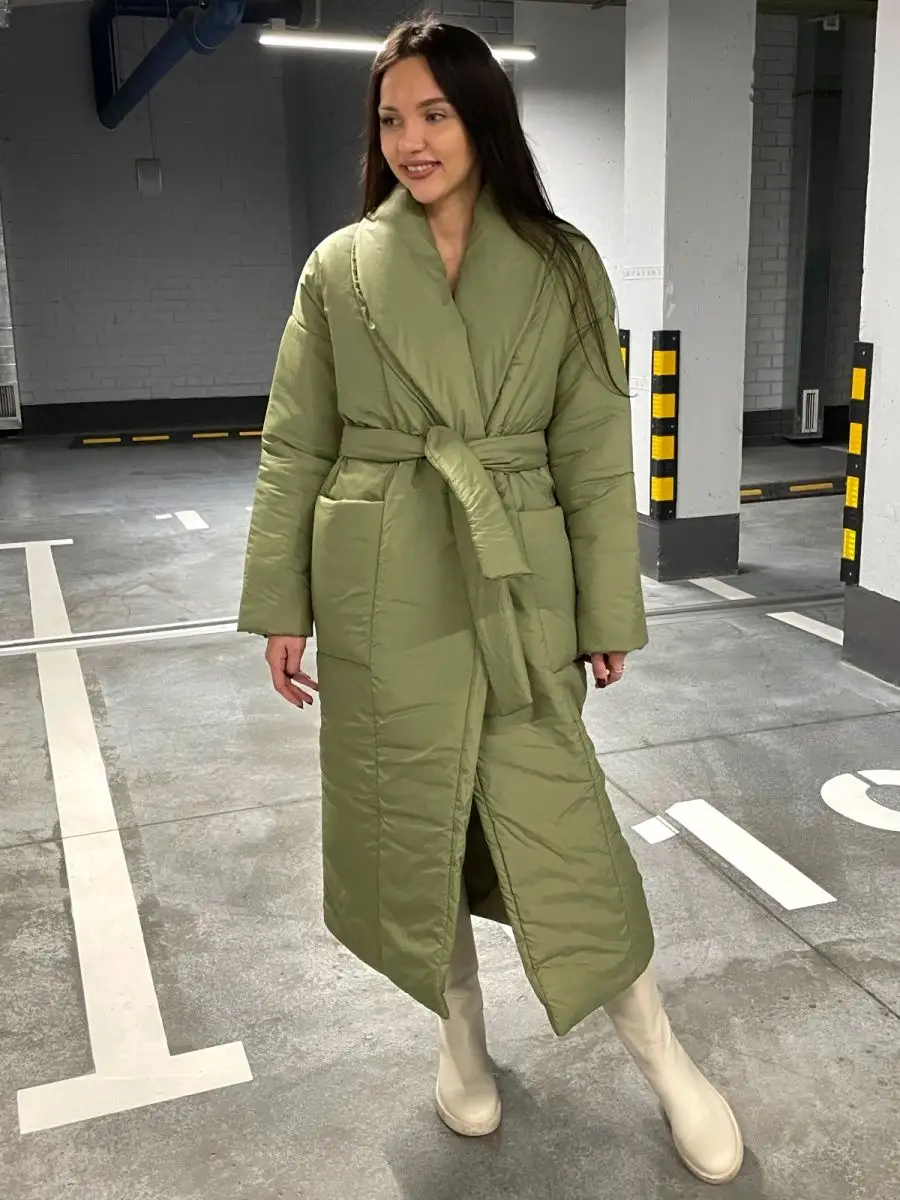 Куртка женская зимняя длинная пуховик с поясом оверсайз