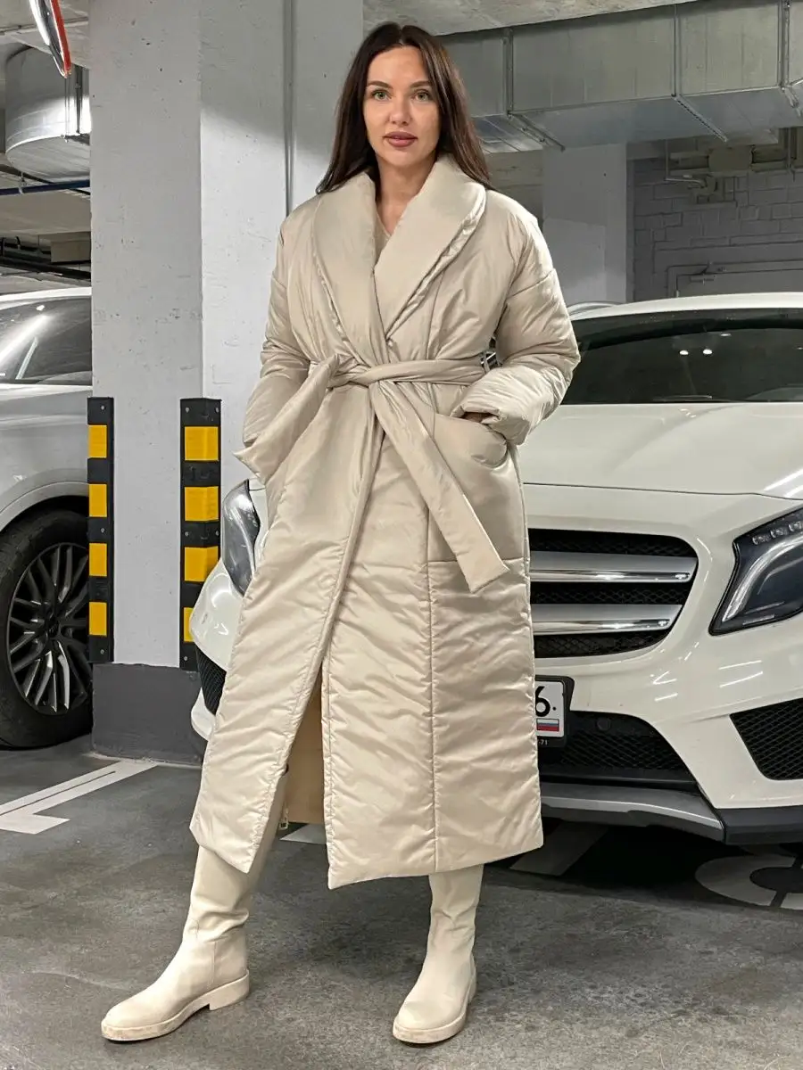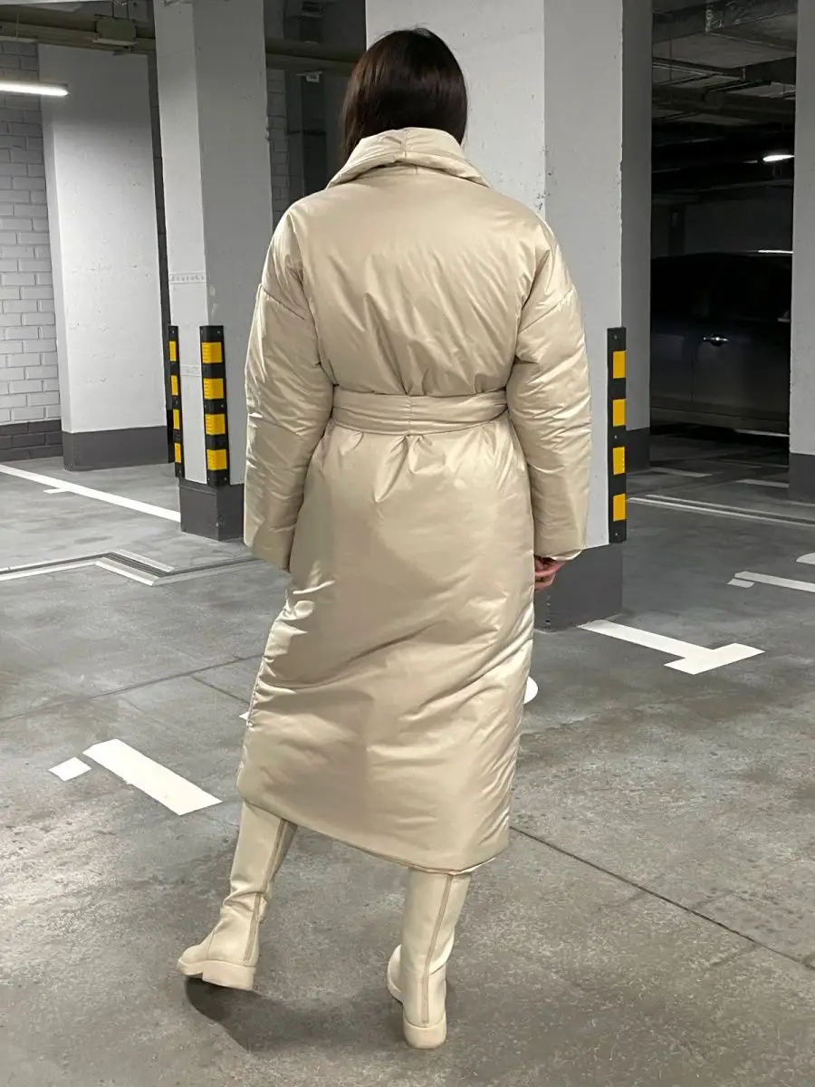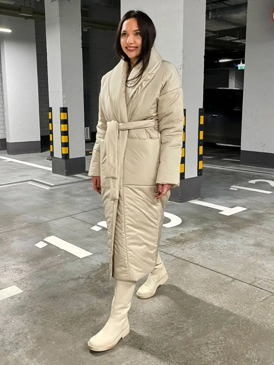 Куртка женская зимняя длинная пуховик с поясом оверсайз