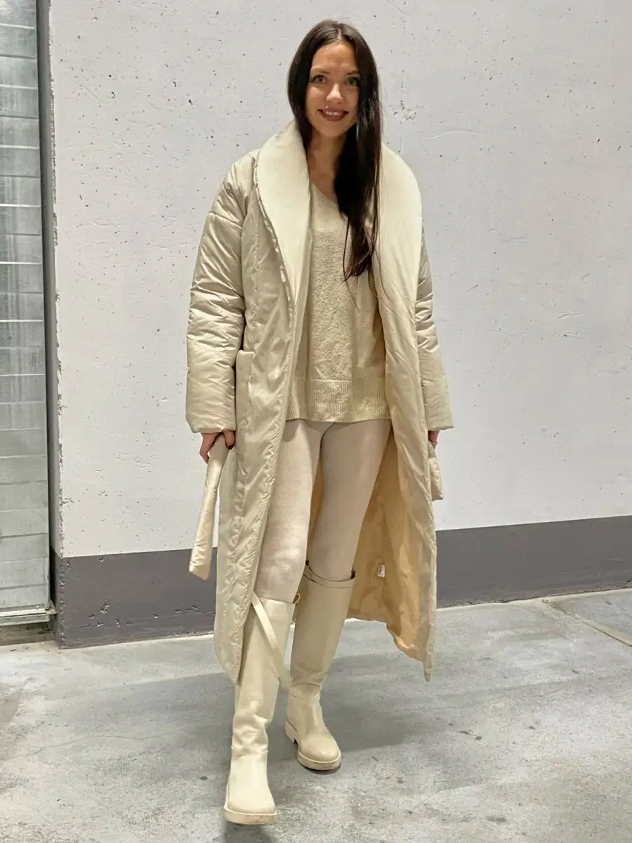 Описание: Пуховик женский зимний на запах бренда Balabon - незаменимая вещь каждой женщины этой зимой. Данная модель имеет еще одно название "одеяло", которое сейчас на слуху у всех представительниц женского пола. Осенний пуховик-одеяло называется так, потому что не имеет элементов застежки, только ремень. Главной особенностью длинной демисезонной куртки является то, что он закрывает абсолютно все части тела, не давая холодному ветру проникнуть. Верхняя одежда для девочек длиной ниже колена и объемными теплыми рукавами. Парка женская зимняя легкая свободного кроя с поясом — это идеальное решение выглядеть стильно и элегантно. Теплый плащ имеет английский дутый воротник без капюшона и боковые большие врезанные карманы, что добавляет изящности верхней одежде. Стеганое пальто зимнее выполнено из премиальной водоотталкивающей и непродуваемой ткани. Утепленные пальто для женщин подойдут для повседневной носки на работу или для прогулок с детьми. Тренчкот женский удлиненный - универсальная модная вещь, которую можно сочетать как с джинсами или классическими брюками, так и с платьем или юбкой. Женская одежда на синтепоне размера оверсайз oversize без принта. Отлично будет смотреться на фигуре любого размера и на беременных, так как модель идет как халат на поясе. Полупальто женское утепленное рекомендовано при температурном режиме от +5 до -25.