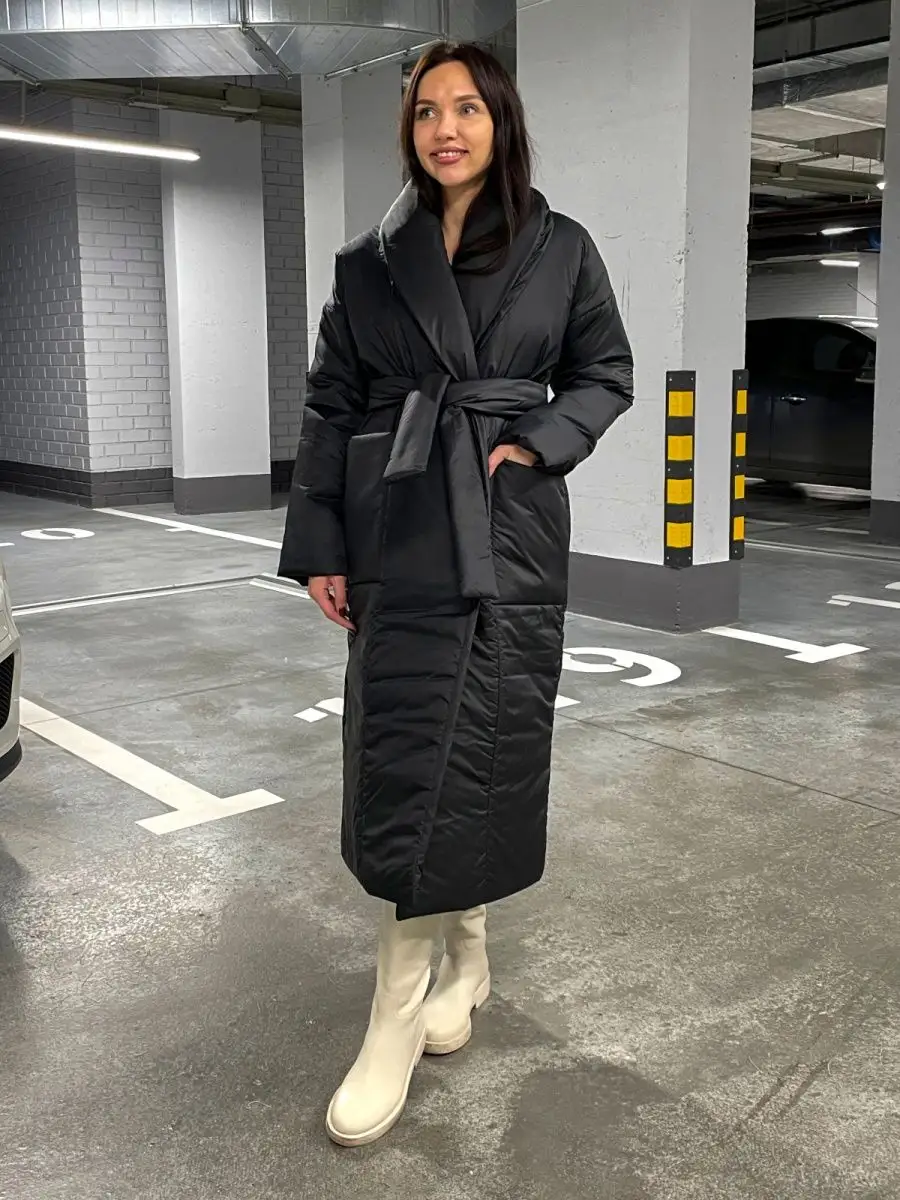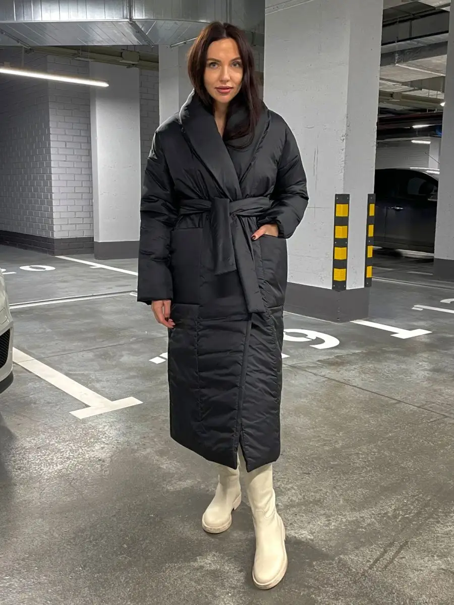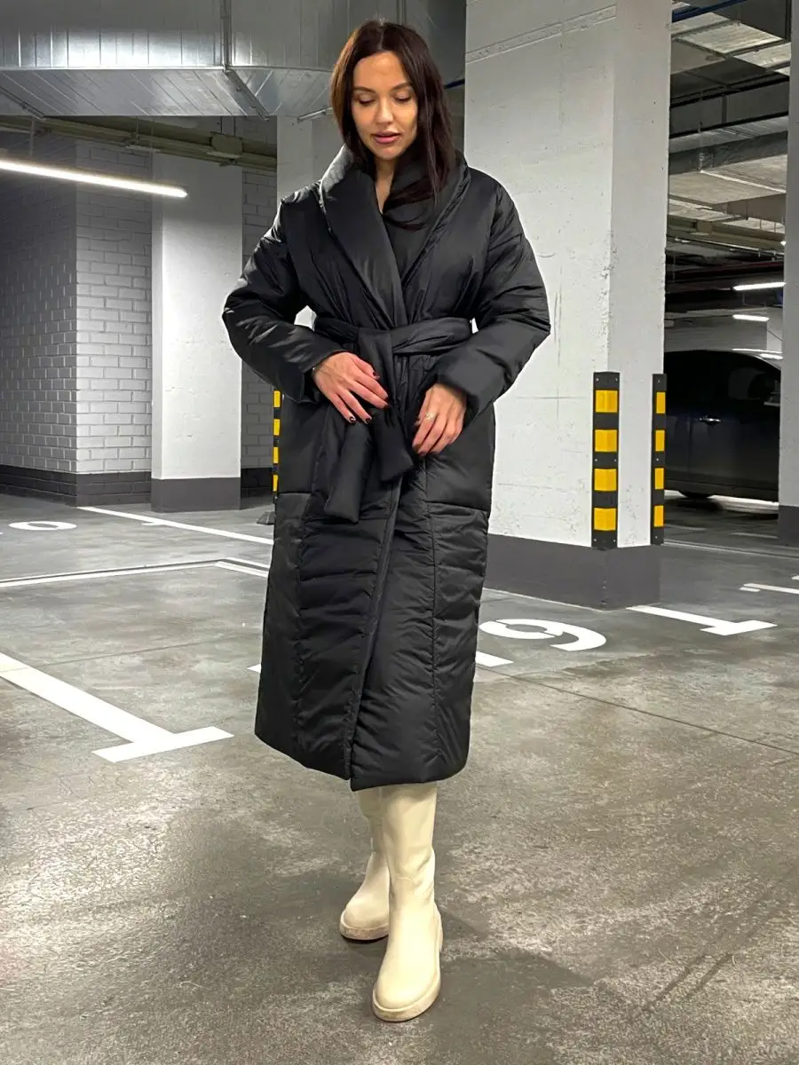 Куртка женская зимняя длинная пуховик с поясом оверсайз