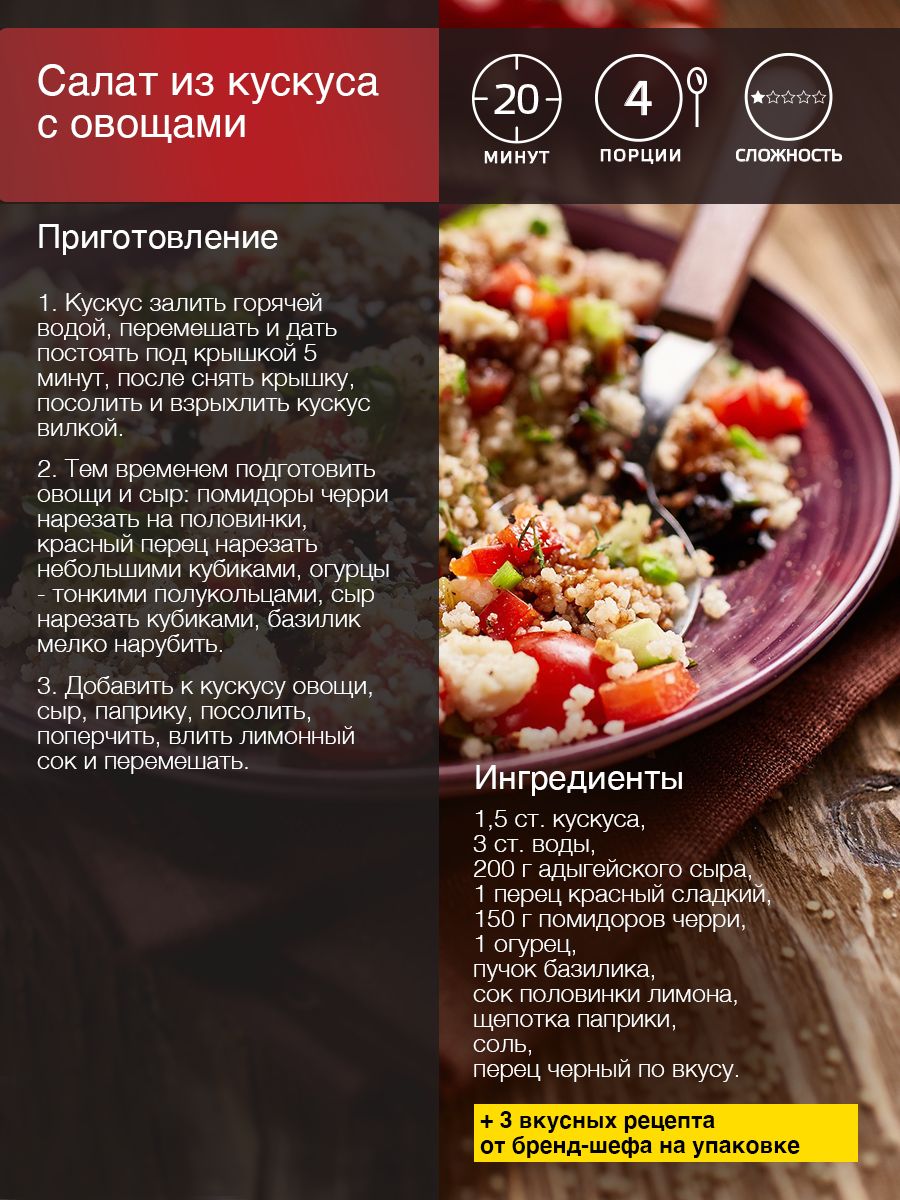 Описание: Кускус получают из манной крупы, которая сбрызгивается водой, подвергается