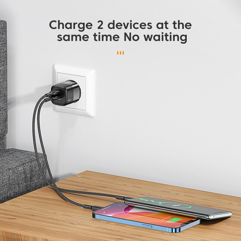 Стабильная зарядка и не повреждение аккумулятора телефона Type-C + USB-A Быстрая зарядка с двумя портами