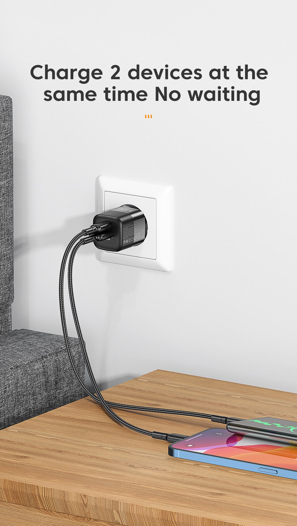 Заряжайте 2 устройства одновременно Без ожидания