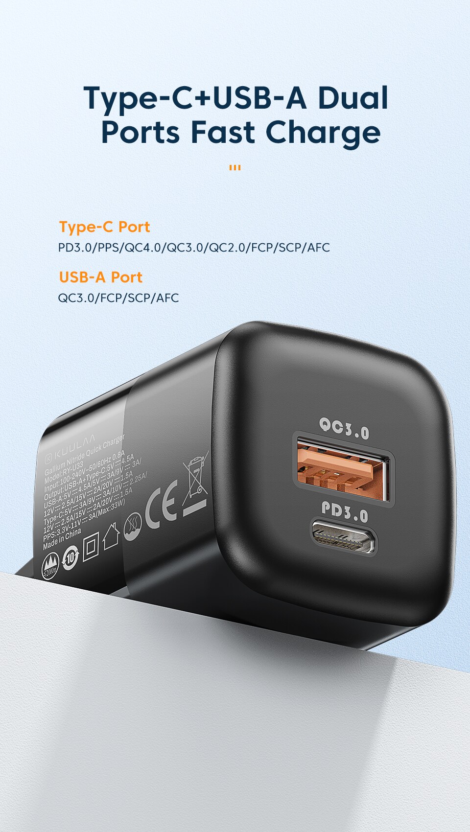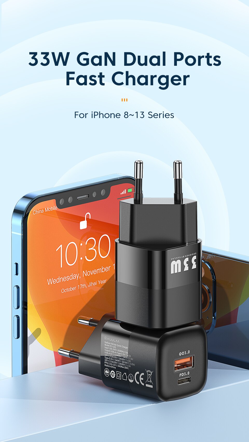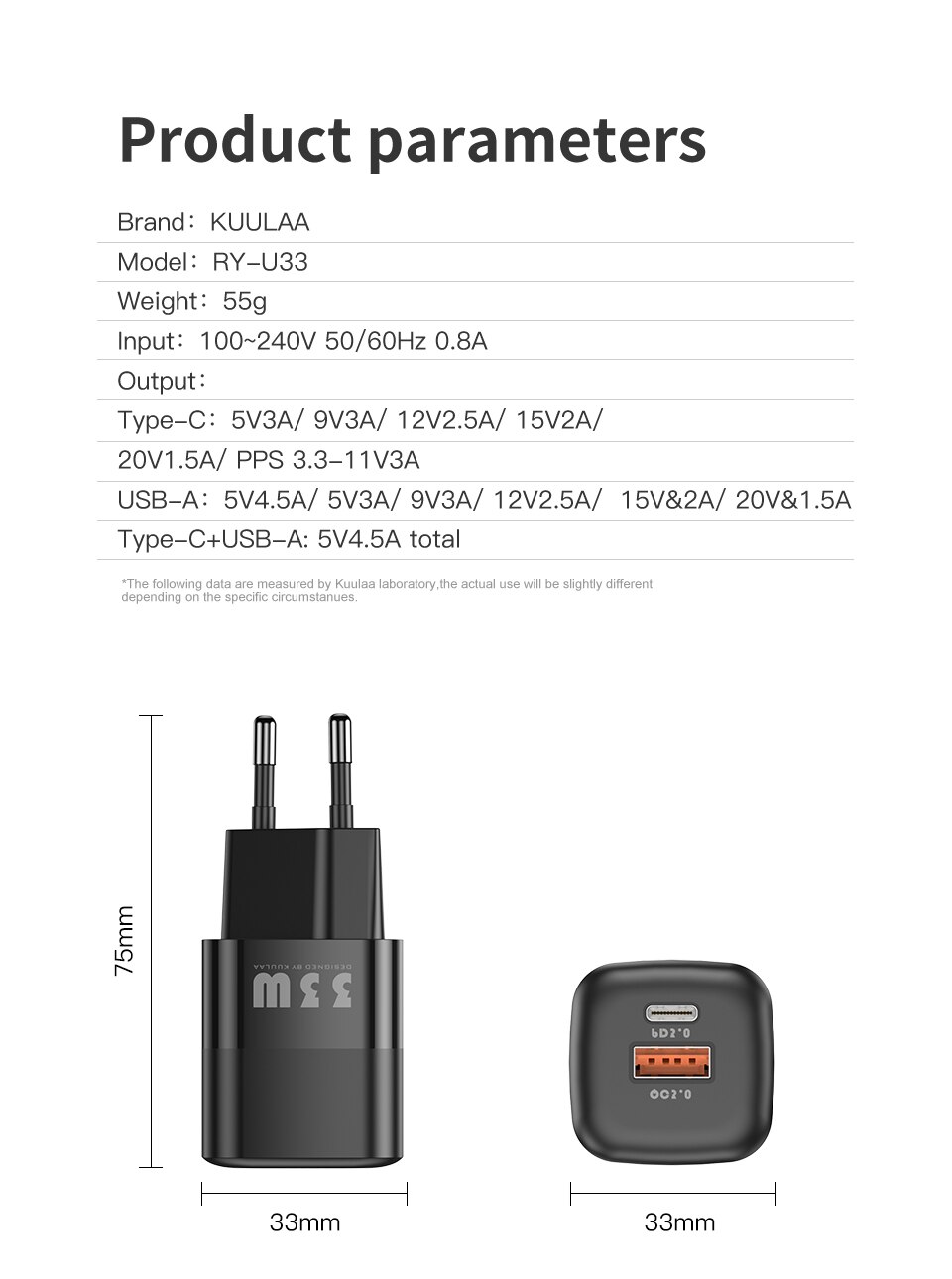 Kuulaa 33W быстрое зарядное устройство Максимальная мощность заряда для продукта Apple