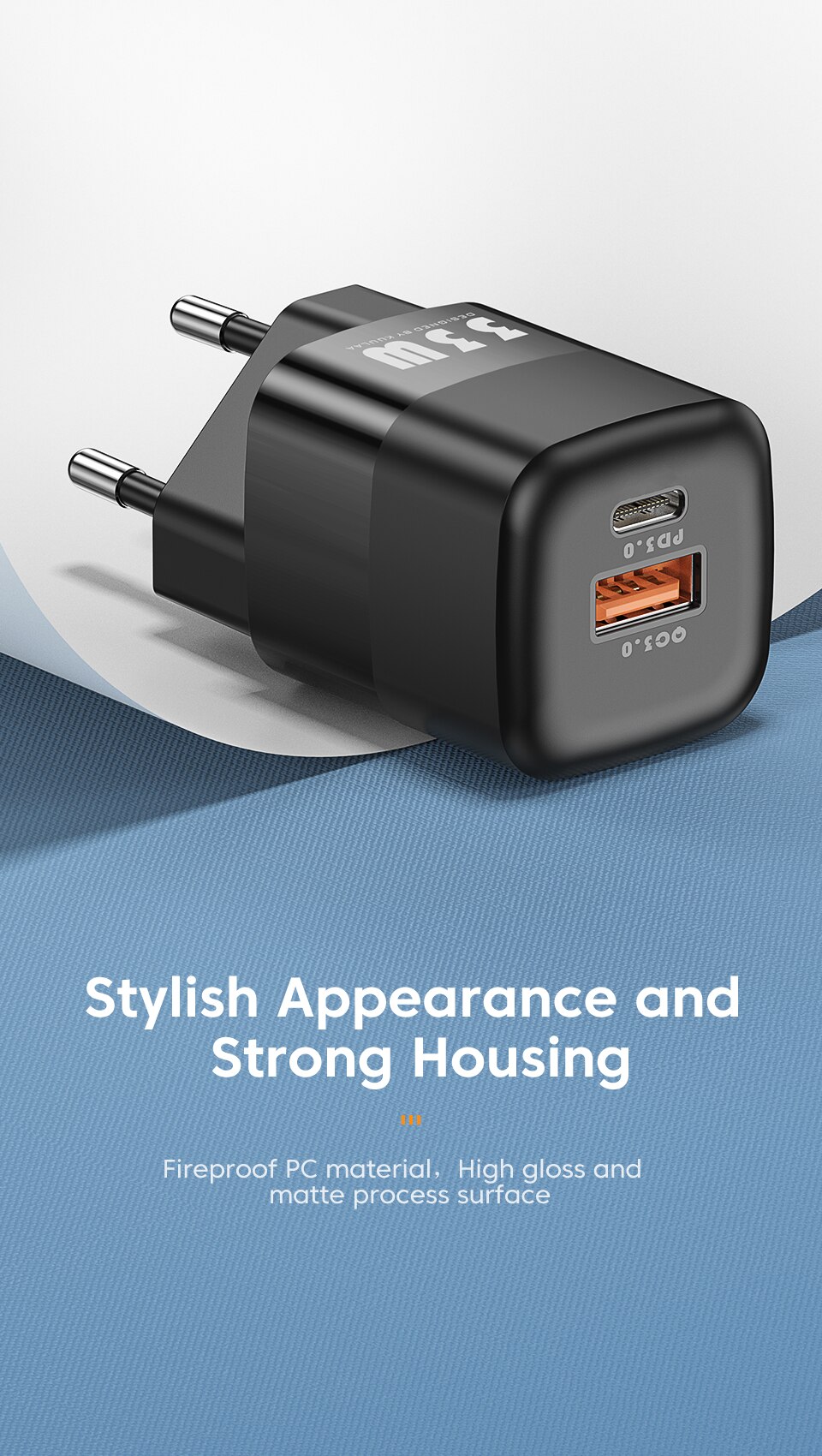Быстрое зарядное устройство Gan с двумя портами 33 Вт