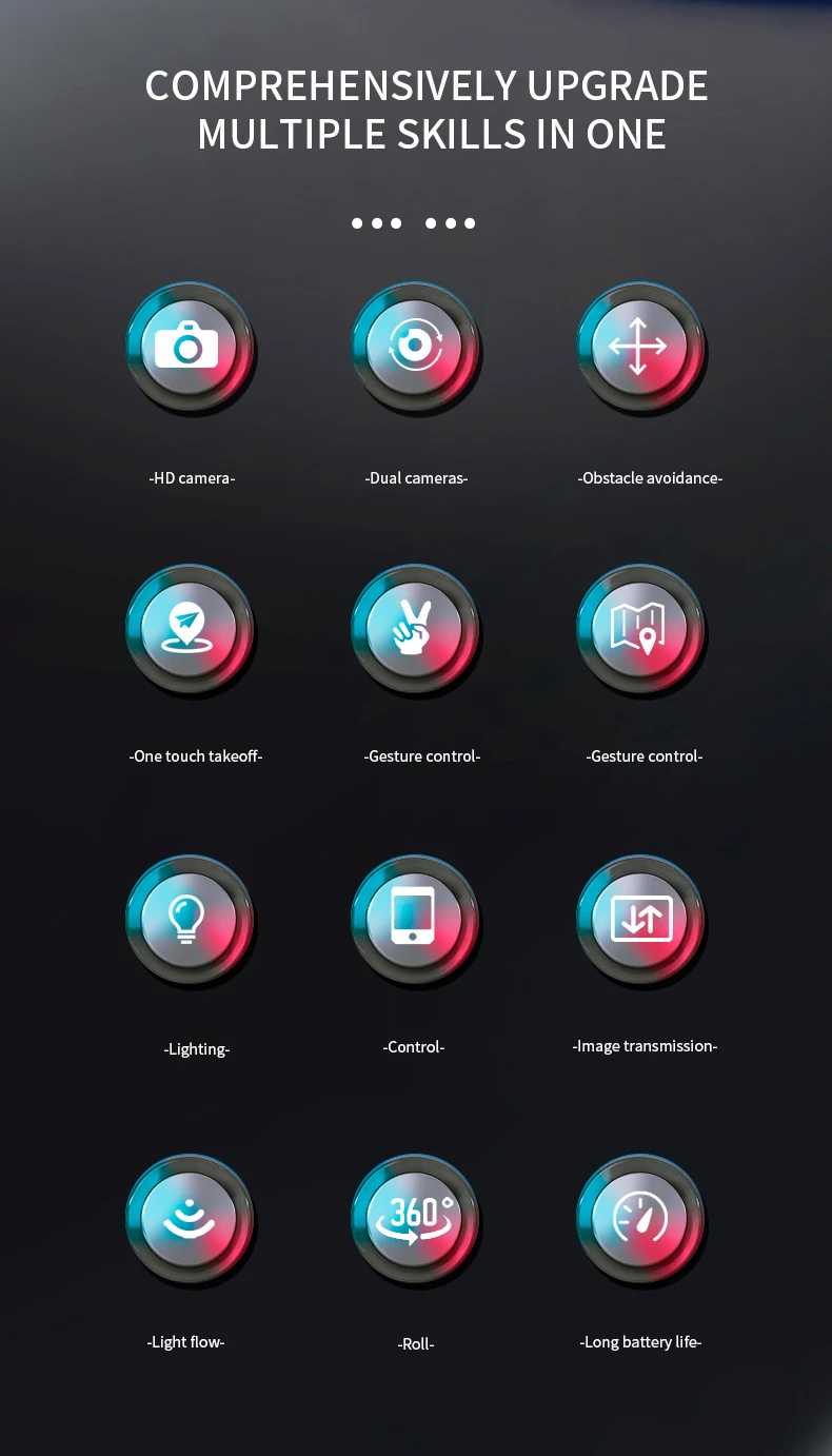 5. Управление мобильным телефоном через приложение, назад с помощью одной клавиши, режим без головы, подъем и убывание, вперед и назад, левый и правый боковой полет