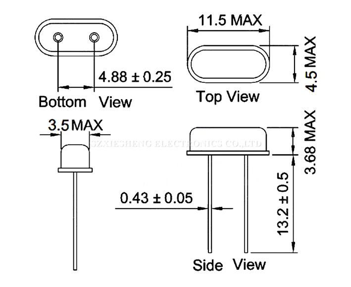 Кварцевый резонатор DIP-2 4 МГц 6 МГц 8 МГц 11,0592 МГц 12 МГц 16 МГц 20 МГц 24 МГц 28,375 МГц 40 МГц