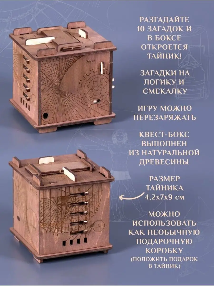 Комплектация Картонная коробка, квест-шкатулка, инструкция