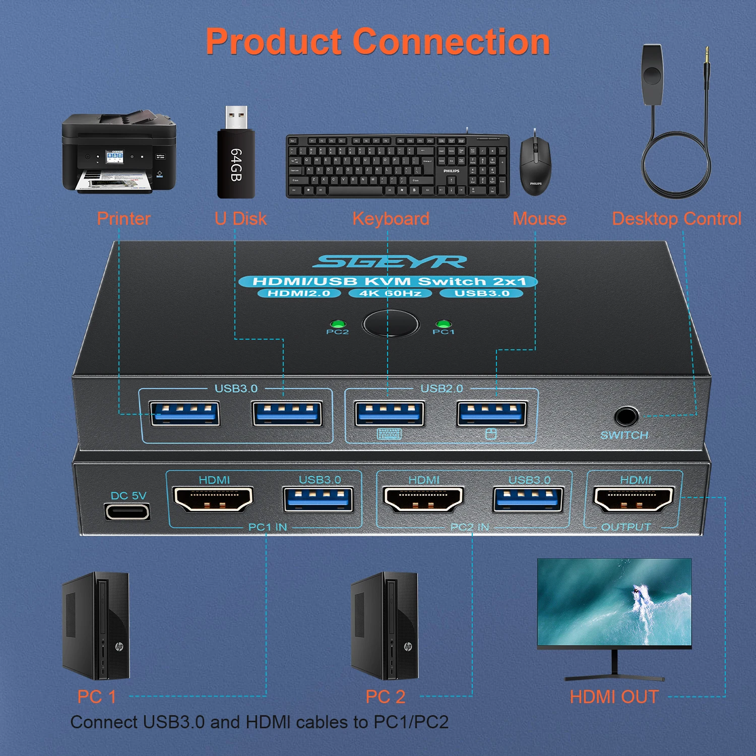 Kvm двойной экран переключатель usb3.0 копия расширенного экрана hd один комплект мыши Управление клавиатурой два компьютера