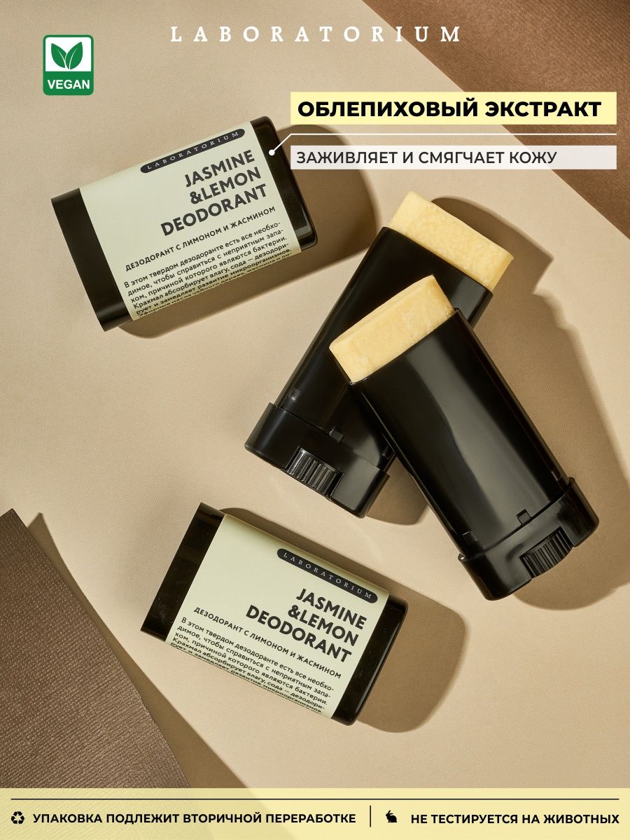 Laboratorium Натуральный твердый дезодорант стик (жасмин и лимон) женский, мужской