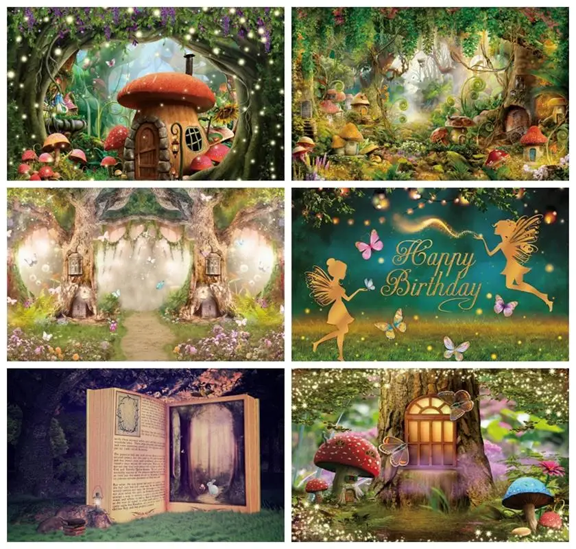 Laeacco фоны с изображением сказочного леса деревьев луга грибов эльфов для портретной фотосъемки детей на день рождения Фотостудия