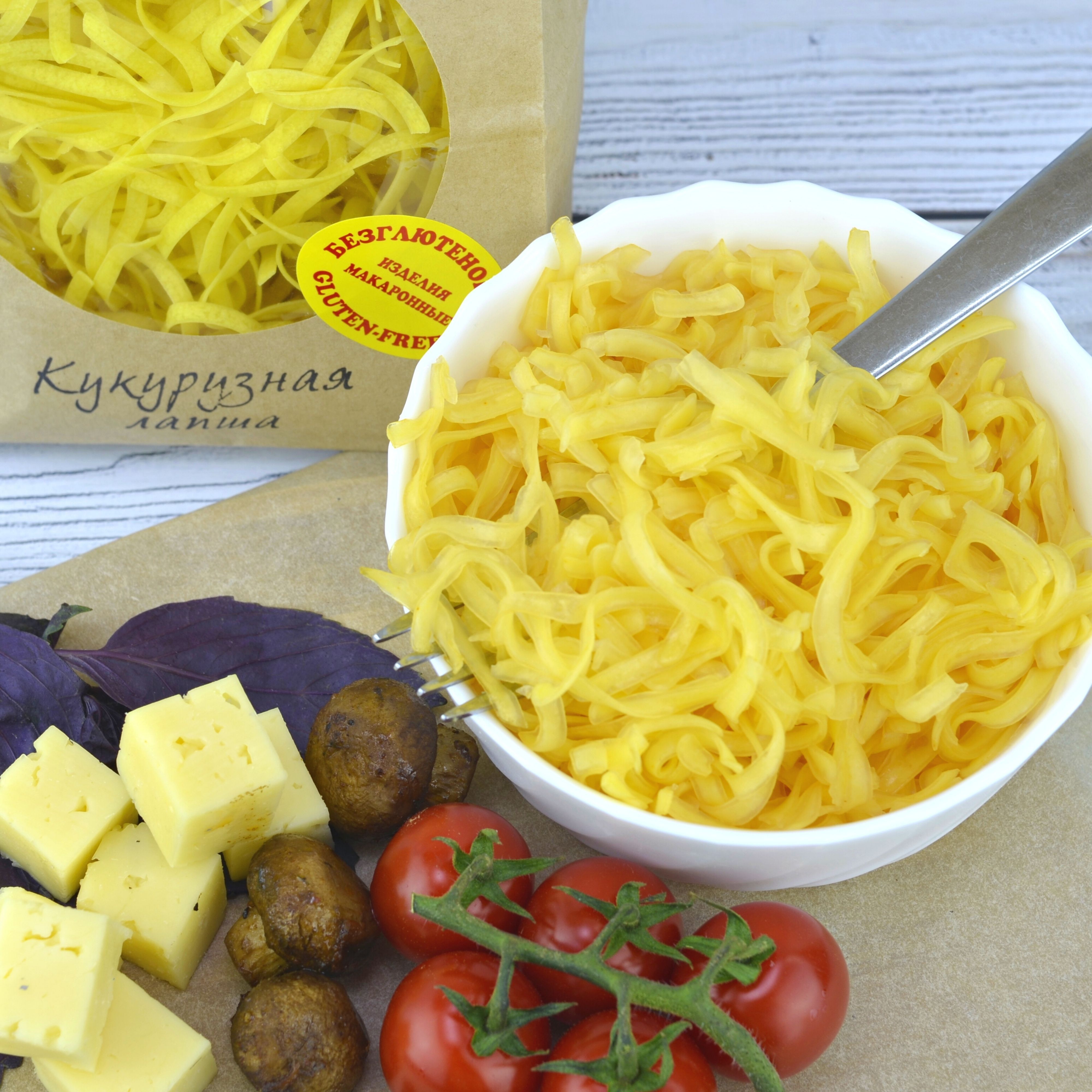 Описание: Лапша кукурузная является безглютеновым продуктом для повседневного и диетического питания. Лапша изготавливается без аллергенов, яиц, красителей, консервантов. Является хорошим гарниром для мясных, рыбных блюд, сочетается с пассерованными овощами и морепродуктами.