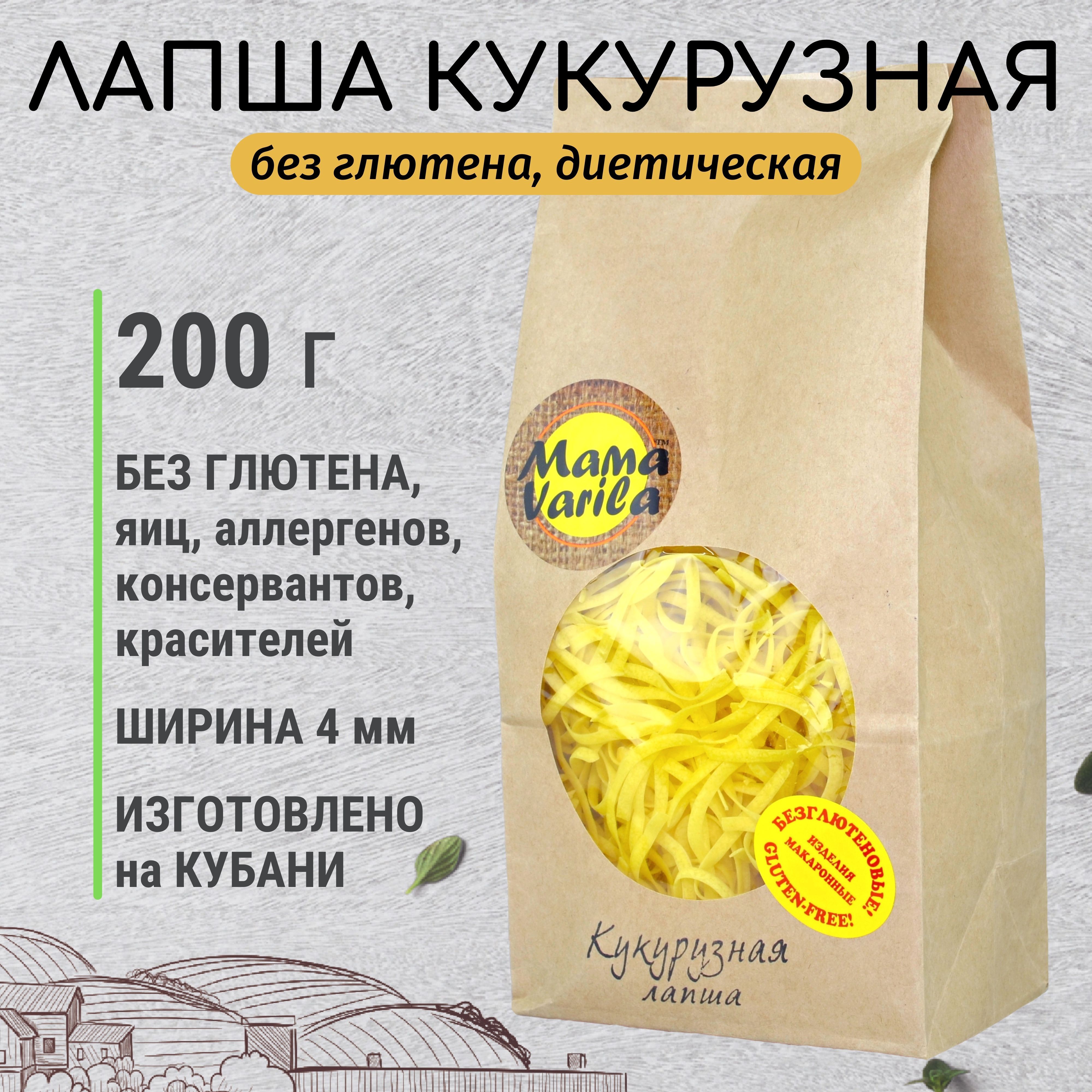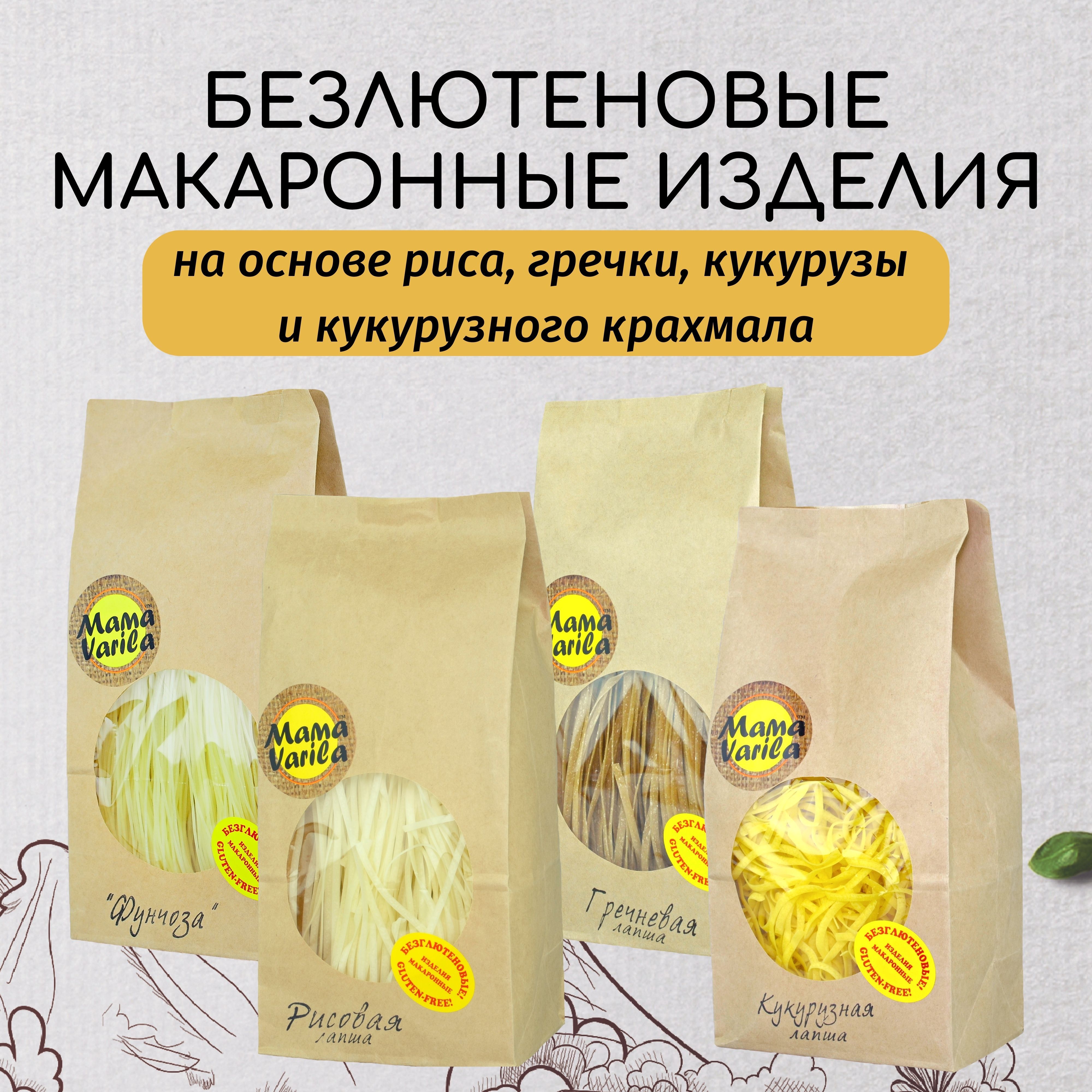 Лапша кукурузная безглютеновая, макаронное изделие Mama Varila - 200 г, не содержит глютен, красители, аллергены, диетическая, постный продукт