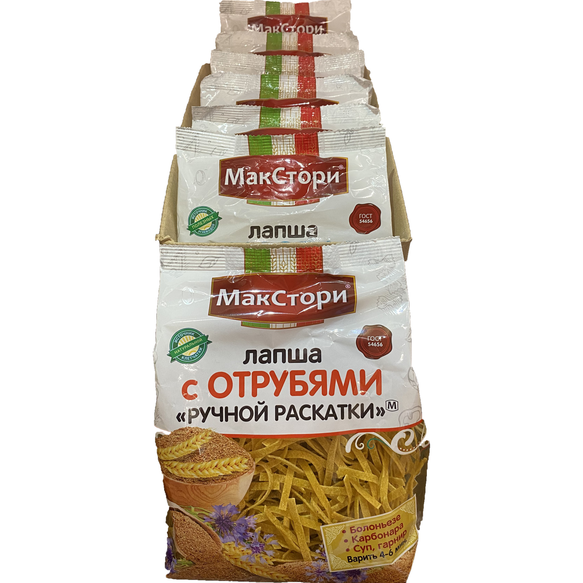 Лапша с отрубями МакСтори, макаронные изделия из твердых сортов пшеницы 250 гр, 6 шт
