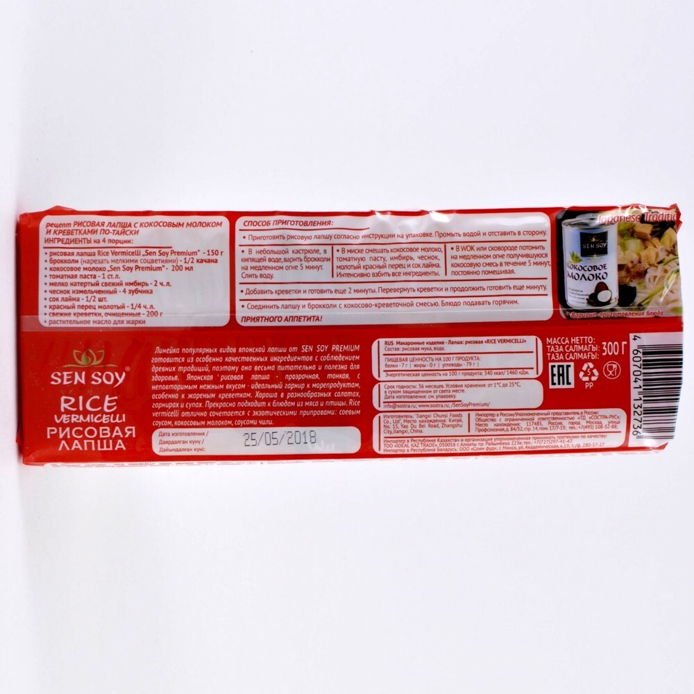 Описание: Лапша - один из основных компонентов японской кухни, столь популярной сегодня во всем мире. Японская лапша готовится из особенно качественной муки с соблюдением древних традиций, поэтому она весьма питательна и полезна для здоровья. Японская рисовая лапша Sen Soy "Rice Vermicelli" - прозрачная, тонкая, с неповторимым нежным вкусом - идеальный гарнир к морепродуктам, особенно к жареным креветкам. Она хороша в разнообразных салатах и супах, а также в дополнение к блюдам из мяса и птицы.
