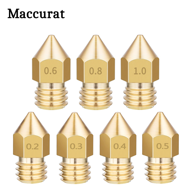Латунная медная насадка для 3D-принтера 0,2/0,3/0,4/0,5/0,6, 5 шт