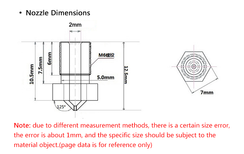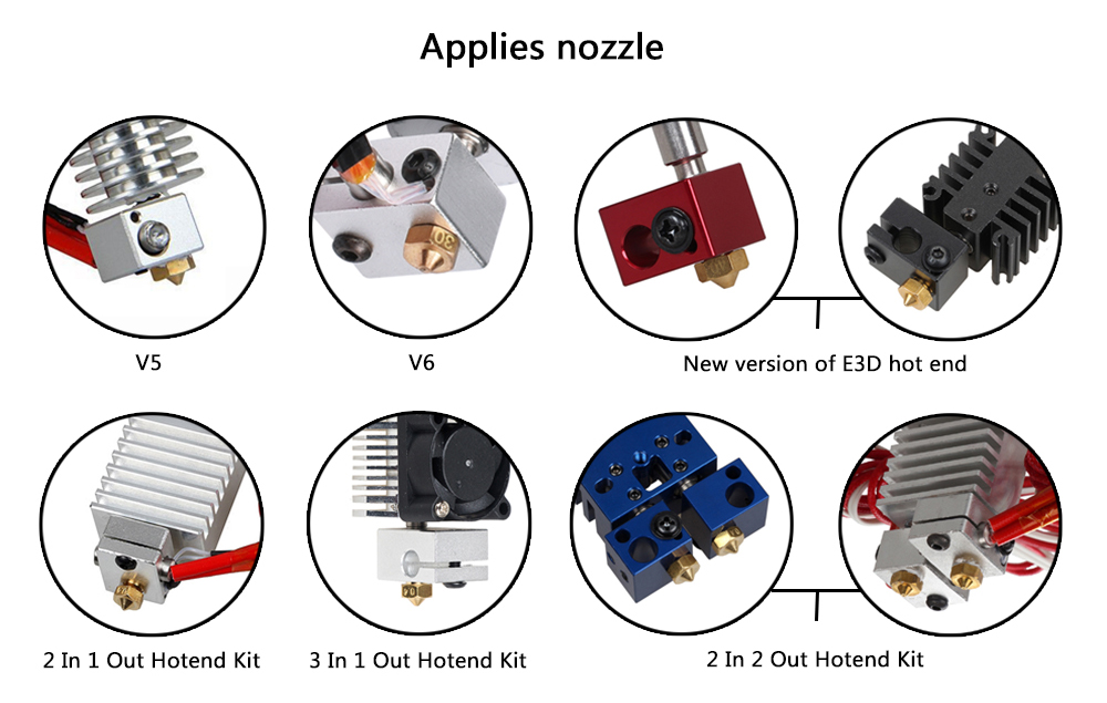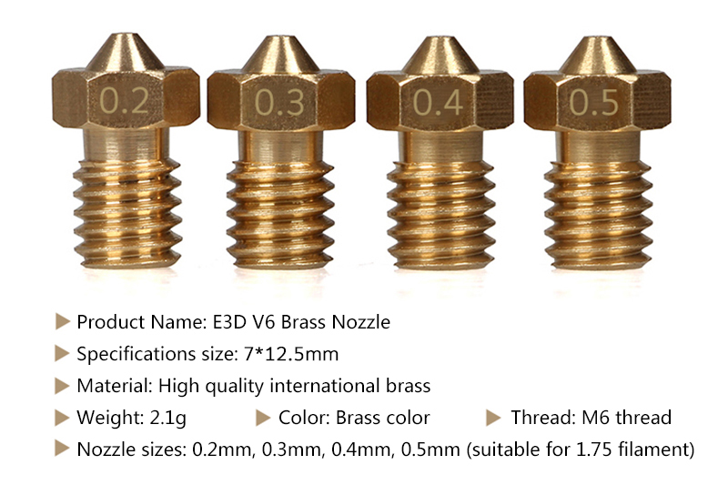This nozzle is suitable for E3D /J-Head. It can also be used for Reprap, MK, UK Structure 3D printers.