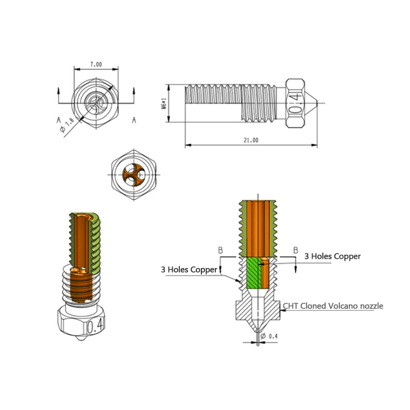 Клон CHT сопло вулкана E3DV6 латунные медные сопла с высоким потоком скоростной экструдер для SW-X2 Anycubi Vyper Kobra Max Plus 3D-принтера