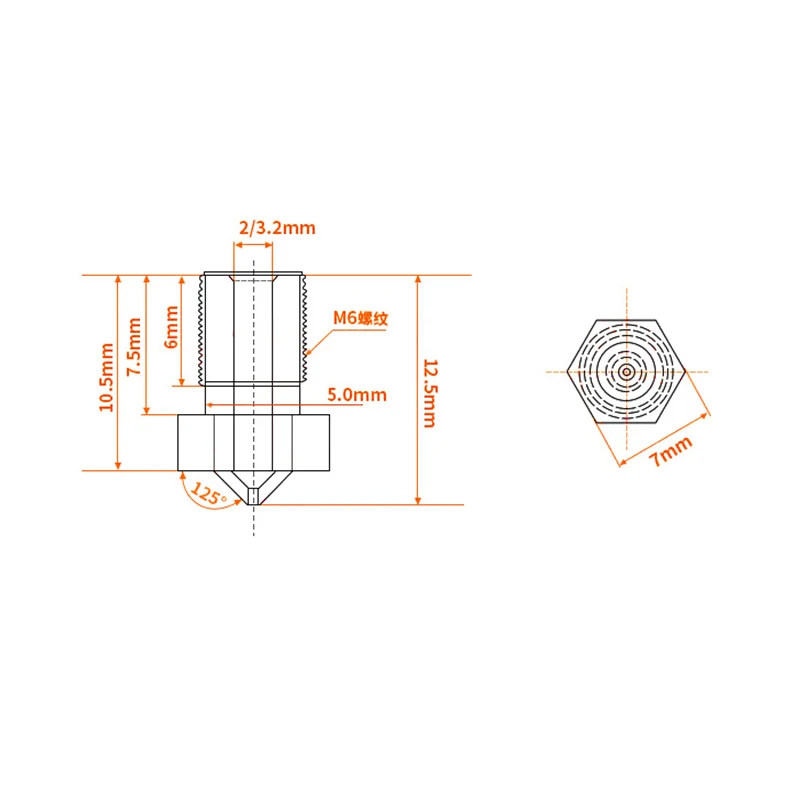 Name E3D V5 V6 Brass Nozzle Head for 3d printer