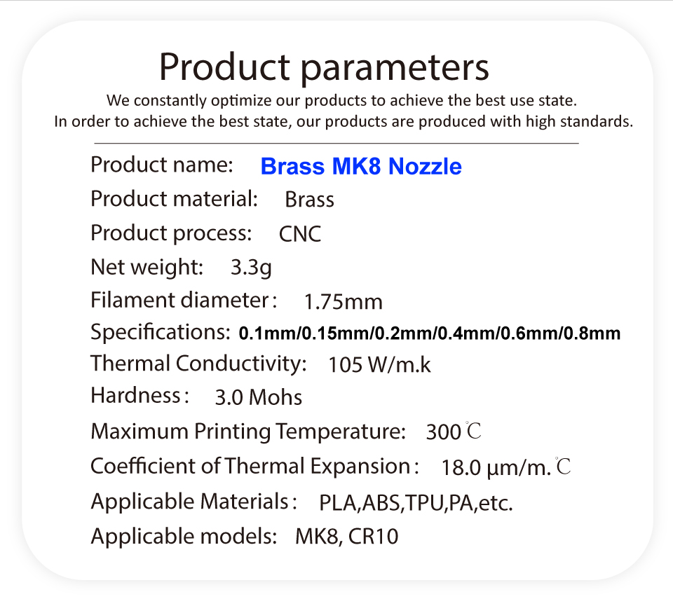This is the highest precision nozzle you can find in all stores. It is a work of art. In order to meet the increasing demands of 3D printer enthusiasts, our store has created a series of 3D printer accessories to make 3D printers more perfect.