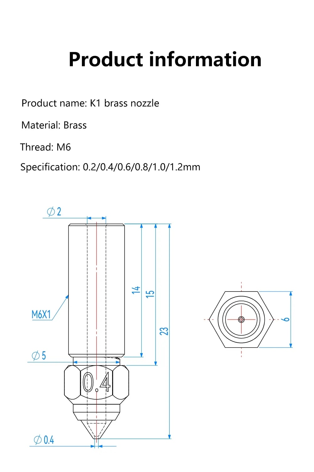 Для Creality K1/K1 Max сопла латунные высокоскоростные сопла для 3D-принтеров 0,2/0,4/0,6/0,8/1,0/1,2 мм подходят для экструзионной головки нити 1,75 мм для CR-M4