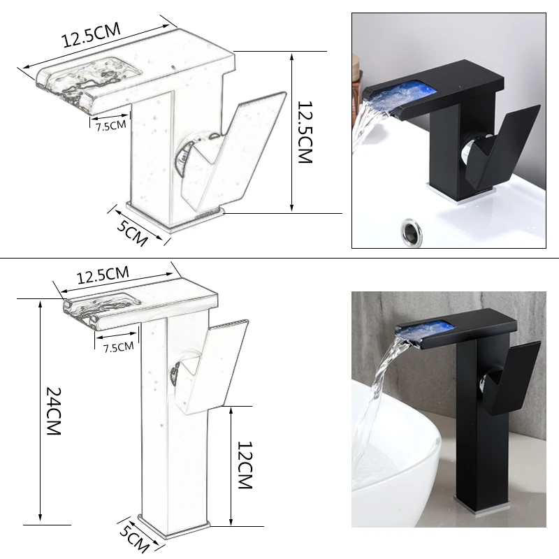 Латунный Смеситель для раковины OXG, светодиодный кран «Водопад» для ванной комнаты, смеситель для холодной и горячей воды, с изменением цвета, с питанием от потока воды