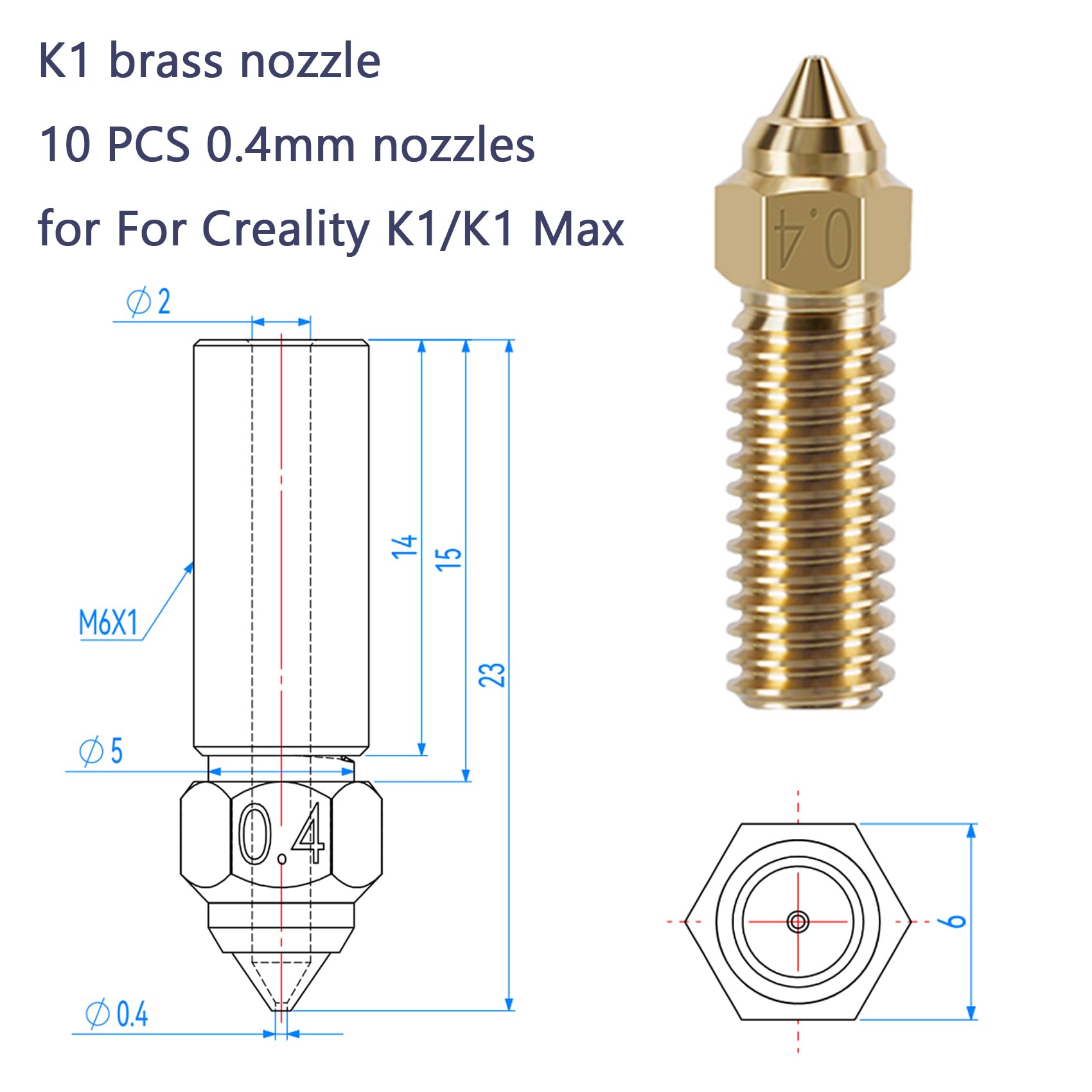 Creality Official K1/K1 Max Сопло 1/5/10 шт. Латунный высокоскоростной 3D-принтер 0,4 мм Комплект сопел подходит для нити 1,75 мм для K1 K1MAX CR-M4