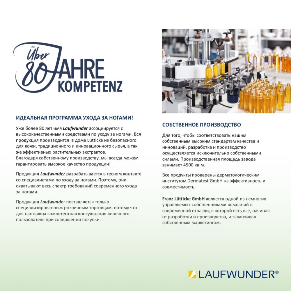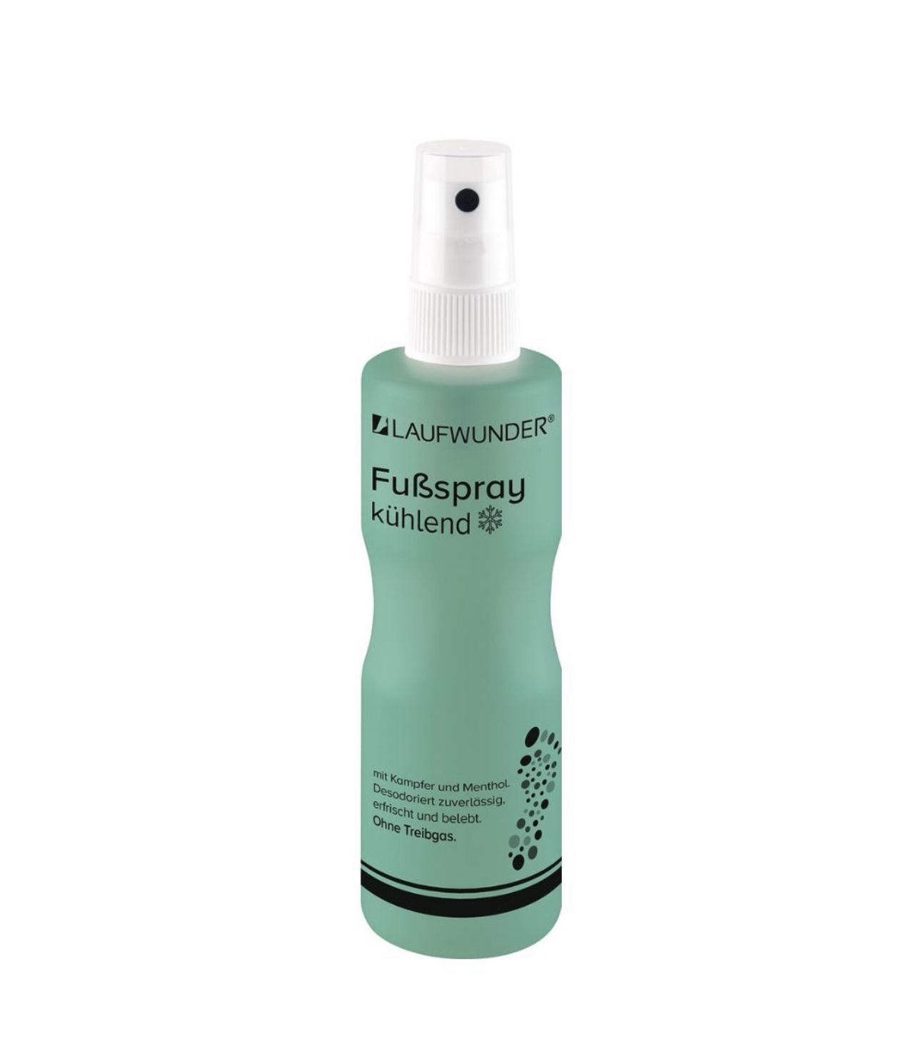 Описание: Спрей для ухода за кожей стоп склонной к повышенному потоотделению из профессиональной немецкой линии Laufwunder. Камфора и ментол, входящие в состав спрея, оказывают охлаждающее и тонизирующее действие, снимают ощущение жжения в ногах. Спрей обладает свойством дезодоранта пролонгированного действия, прекрасно освежает кожу, регулирует потоотделение, предотвращает появление и распространение неприятного запаха, защищает от возникновения грибковых инфекций.