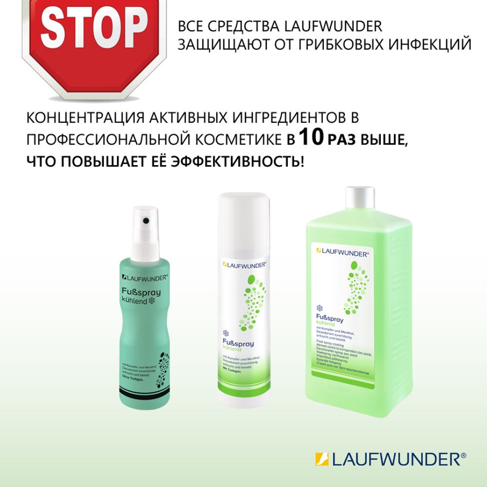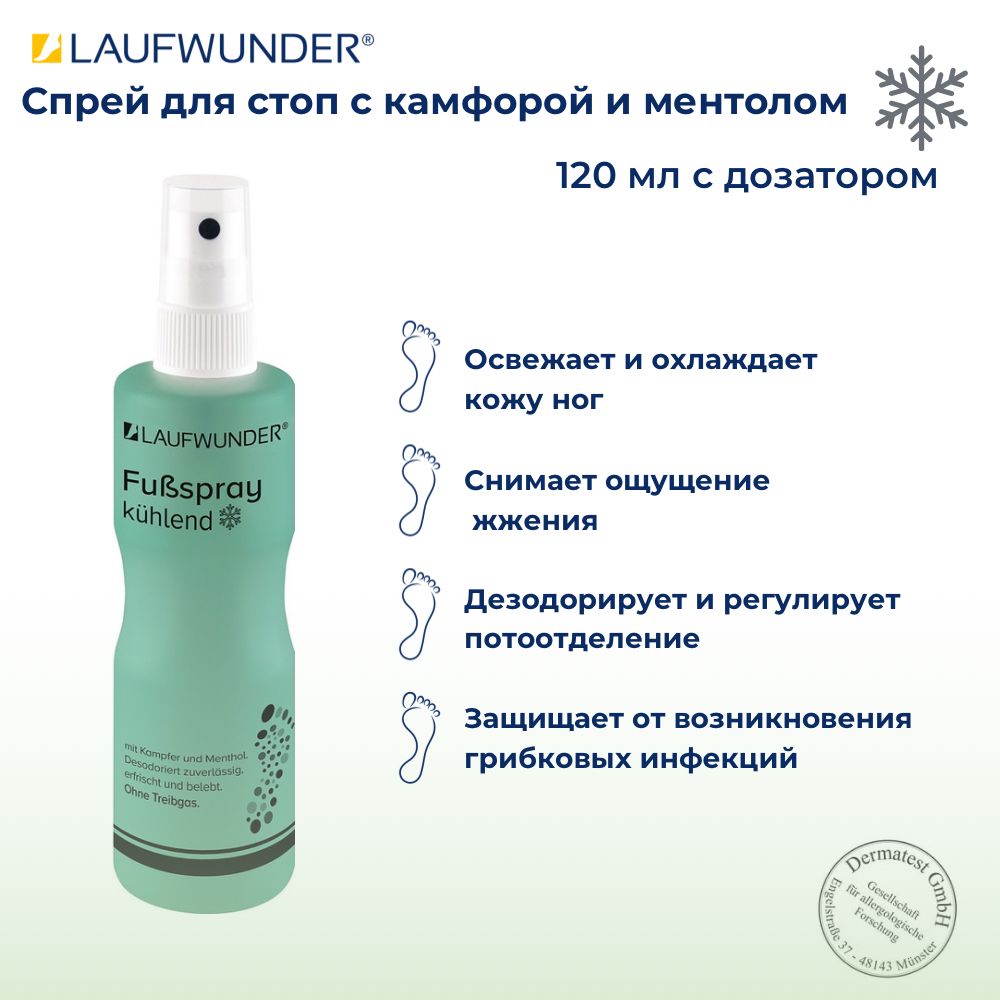 Laufwunder Спрей для ухода за кожей ног и стоп с камфарой и ментолом склонной к повышенному потоотделению, дезодорант для ног, охлаждающий, 120 мл