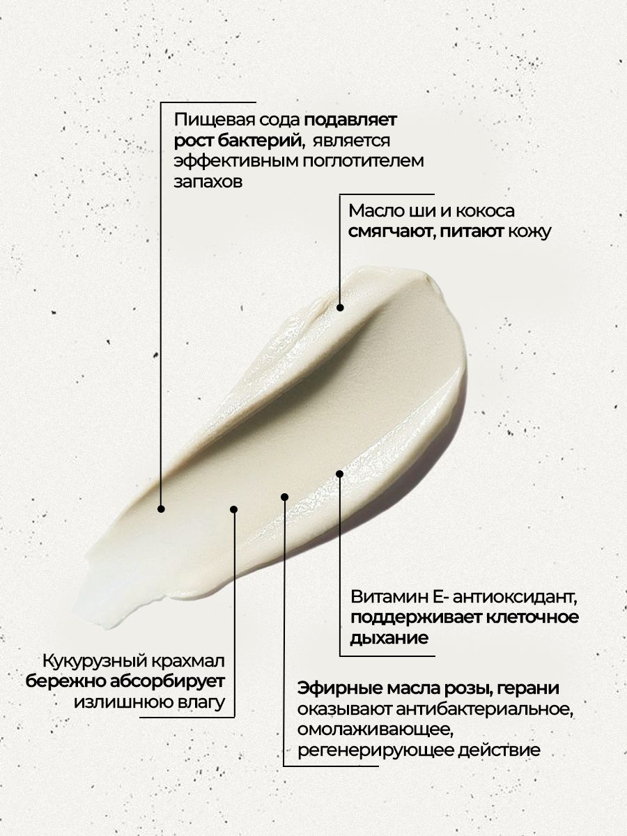 Благодаря природной формуле данный содовый дезодорант обеспечивает бережный уход и защиту, поддерживая естественные регулирующие функции кожи.