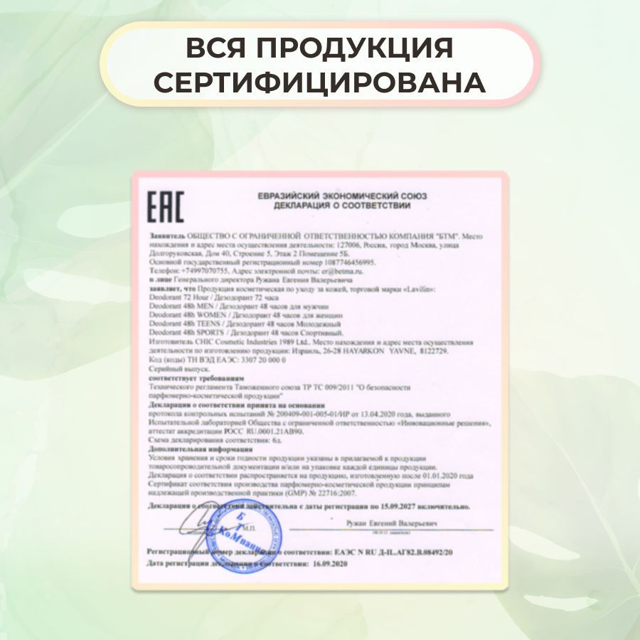 дезодорант ролл лавилин рекомендуется наносить на чистую сухую кожу, перед первым применением не использовать другие дезодоранты 48 часов.