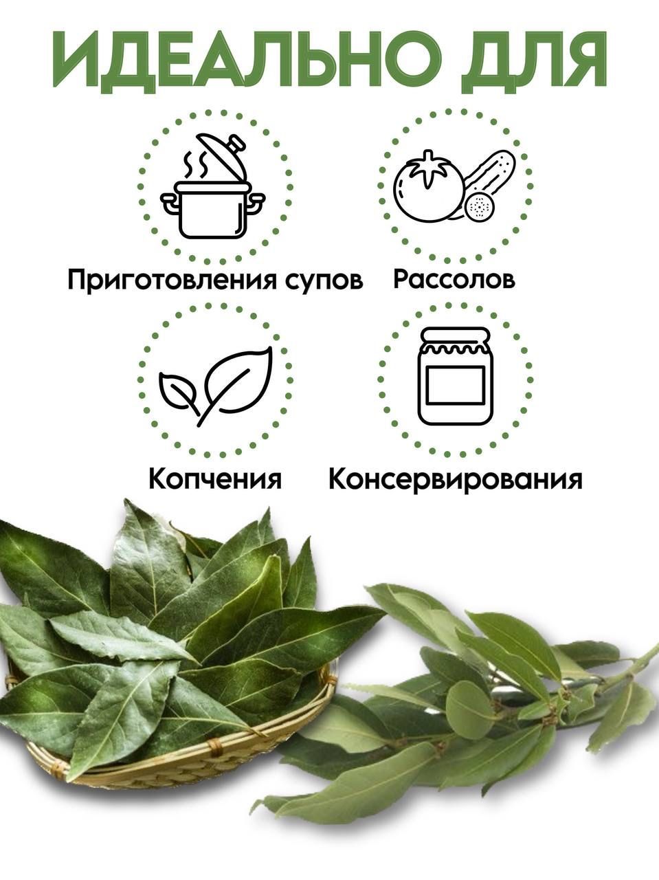 Описание: Хотите придать своим блюдам неповторимый вкус и аромат? Тогда обязательно попробуйте приправу из цельного листа лавра! Наша приправа 100% натуральная и не содержит искусственных добавок или консервантов. Цельный лист лавра - это настоящий кладезь витаминов и микроэлементов, которые благотворно влияют на организм человека. Он также является отличным природным антиоксидантом, который помогает защитить клетки от свободных радикалов. Приправа из цельного листа лавра идеально подходит для маринадов, супов, соусов и многих других блюд. Она придает блюдам глубокий и насыщенный вкус, который будет радовать вас и ваших гостей. Не упустите возможность попробовать нашу 100% натуральную приправу из цельного листа лавра и наслаждаться вкусом ваших любимых блюд!