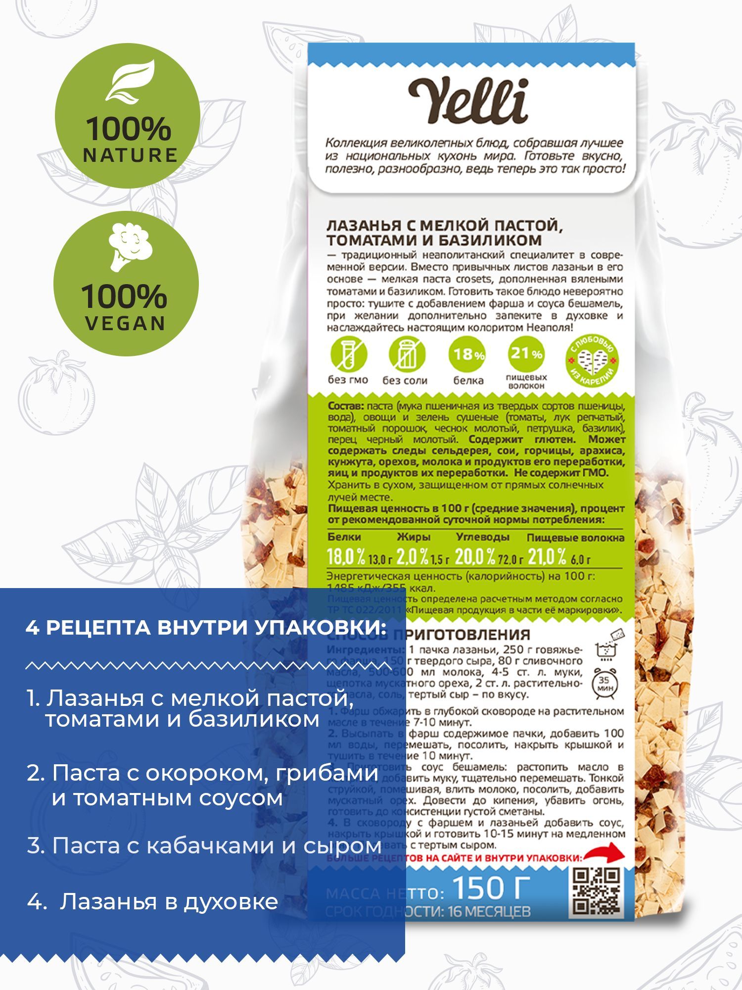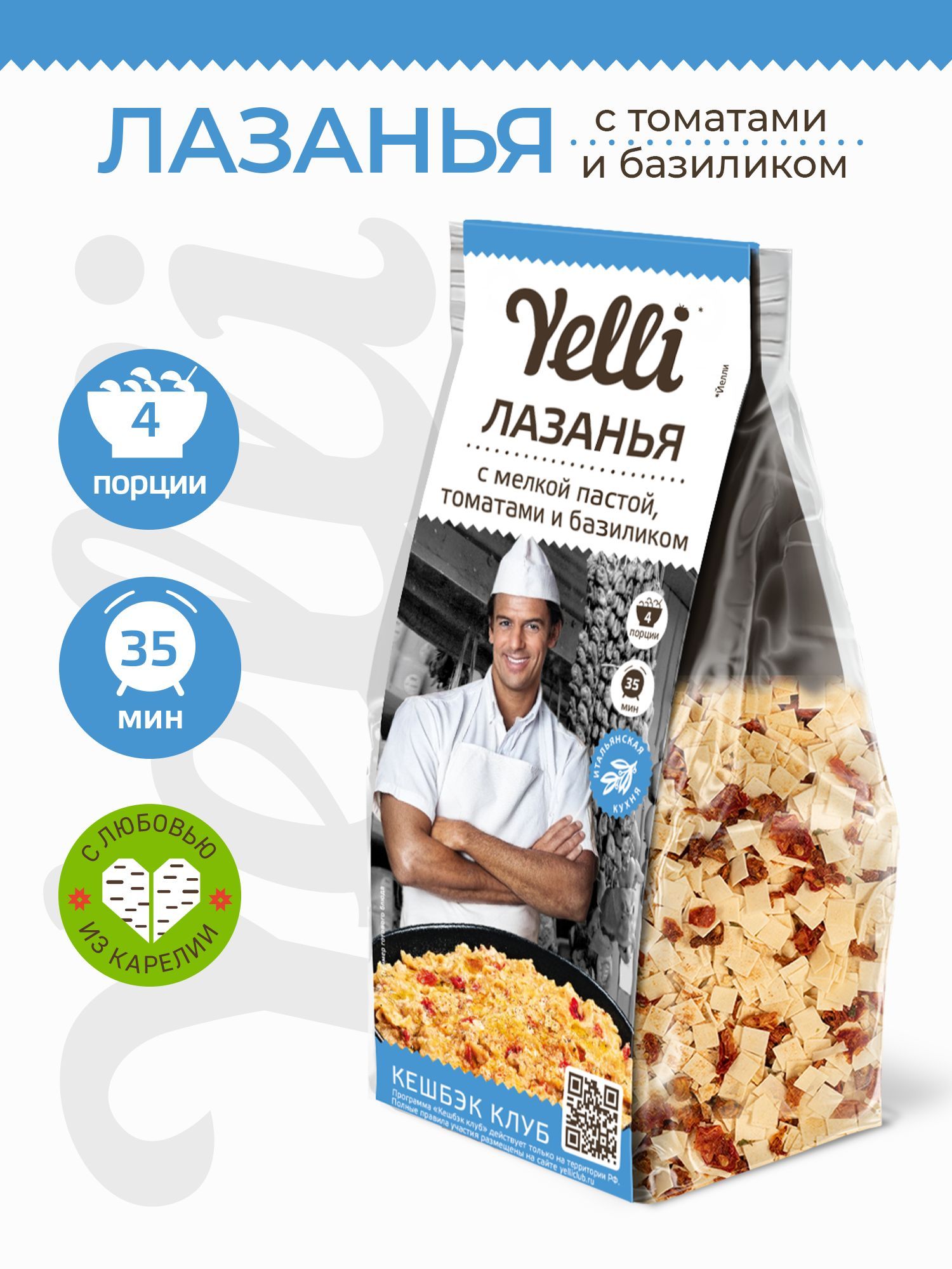 Лазанья с мелкой пастой, томатами и базиликом Yelli 150 г/ Смесь для приготовления второго блюда