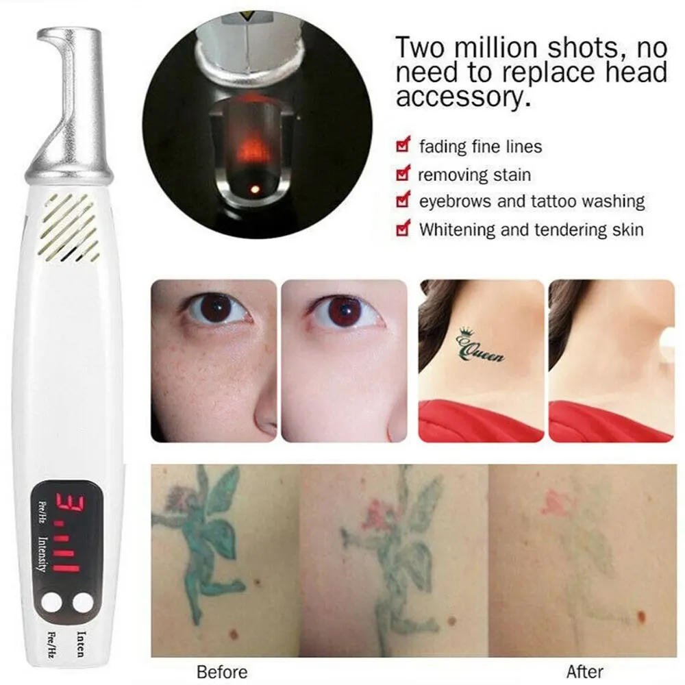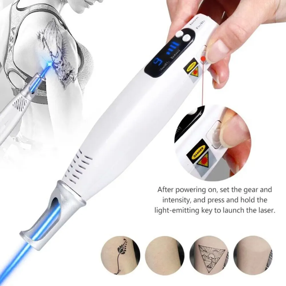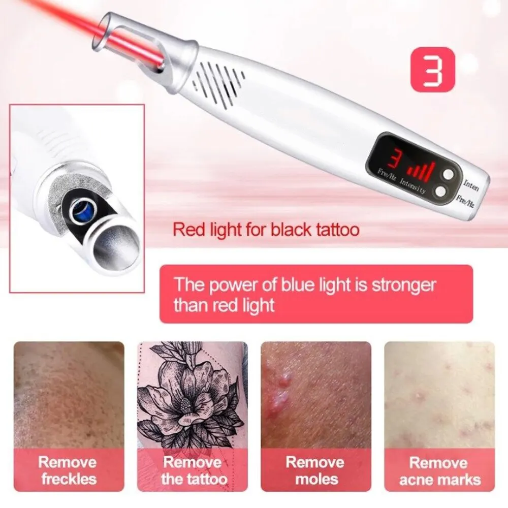 • Татуировка синим светом:Функция татуировки синего света нацелена на определенные участки кожи, что делает ее эффективным инструментом для удаления татуировок и других нежелательных следов.