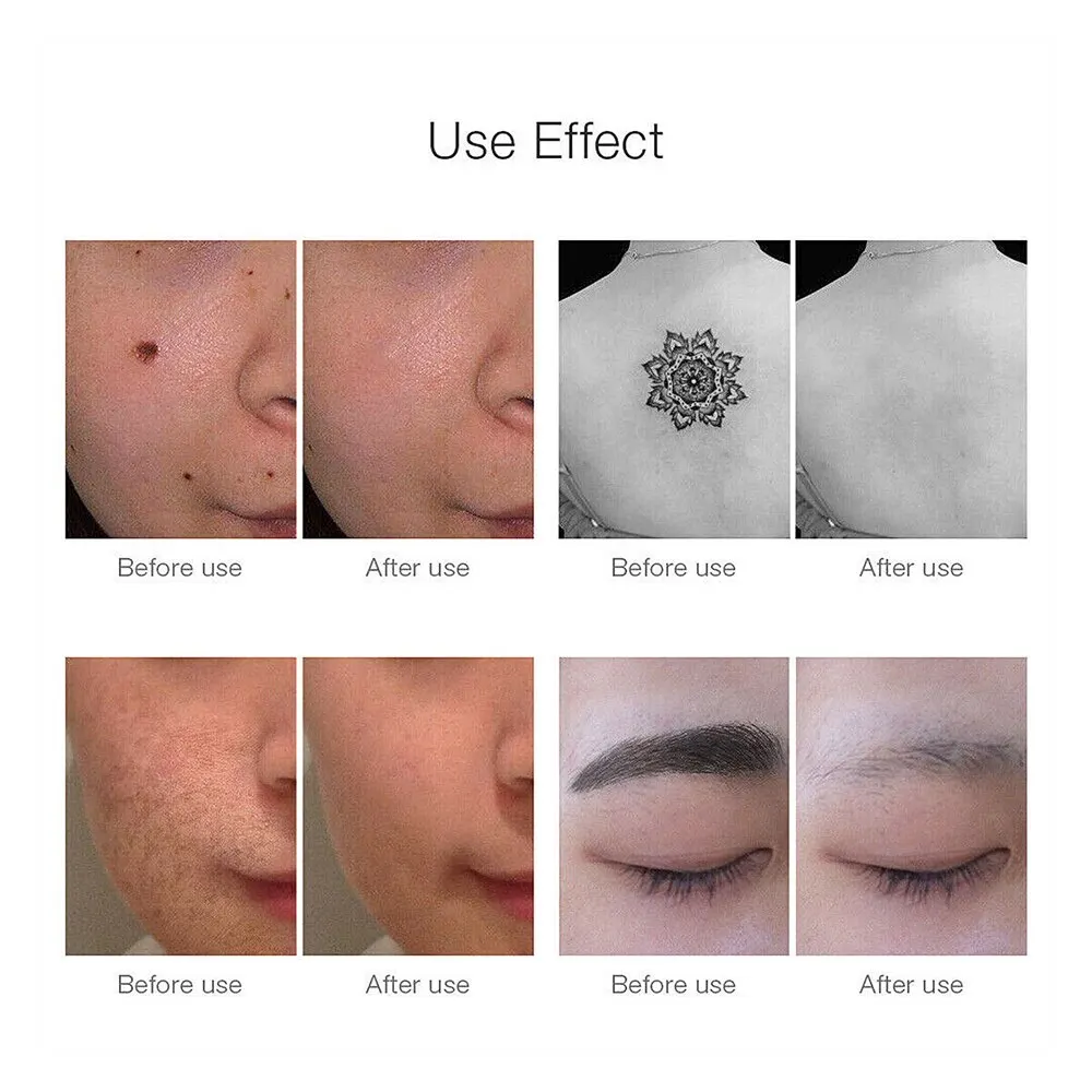 • Лазерное удаление пятен :Функция удаления пятен лазера нацелена на конкретные проблемные области, такие как темные пятна или шрамы, чтобы помочь улучшить общий внешний вид вашей кожи.
