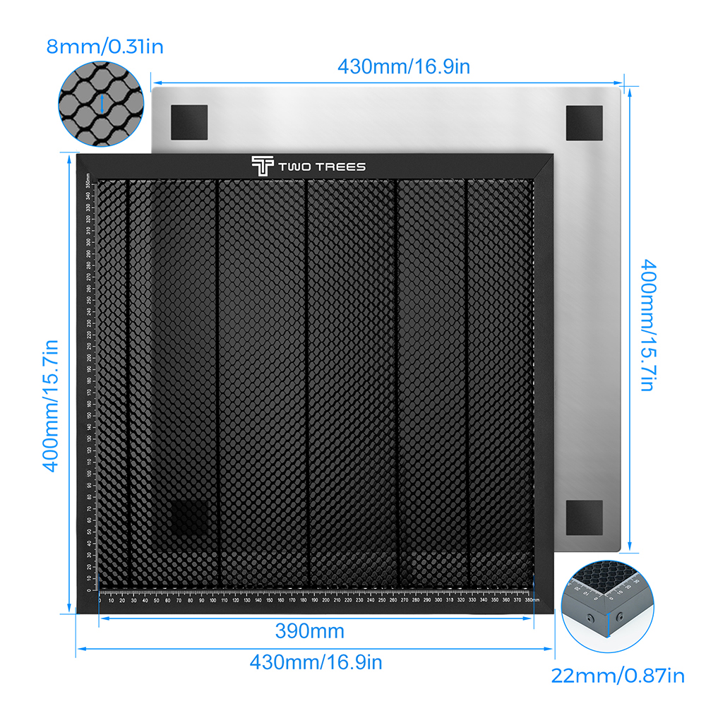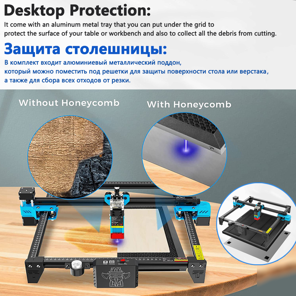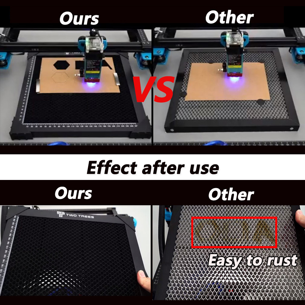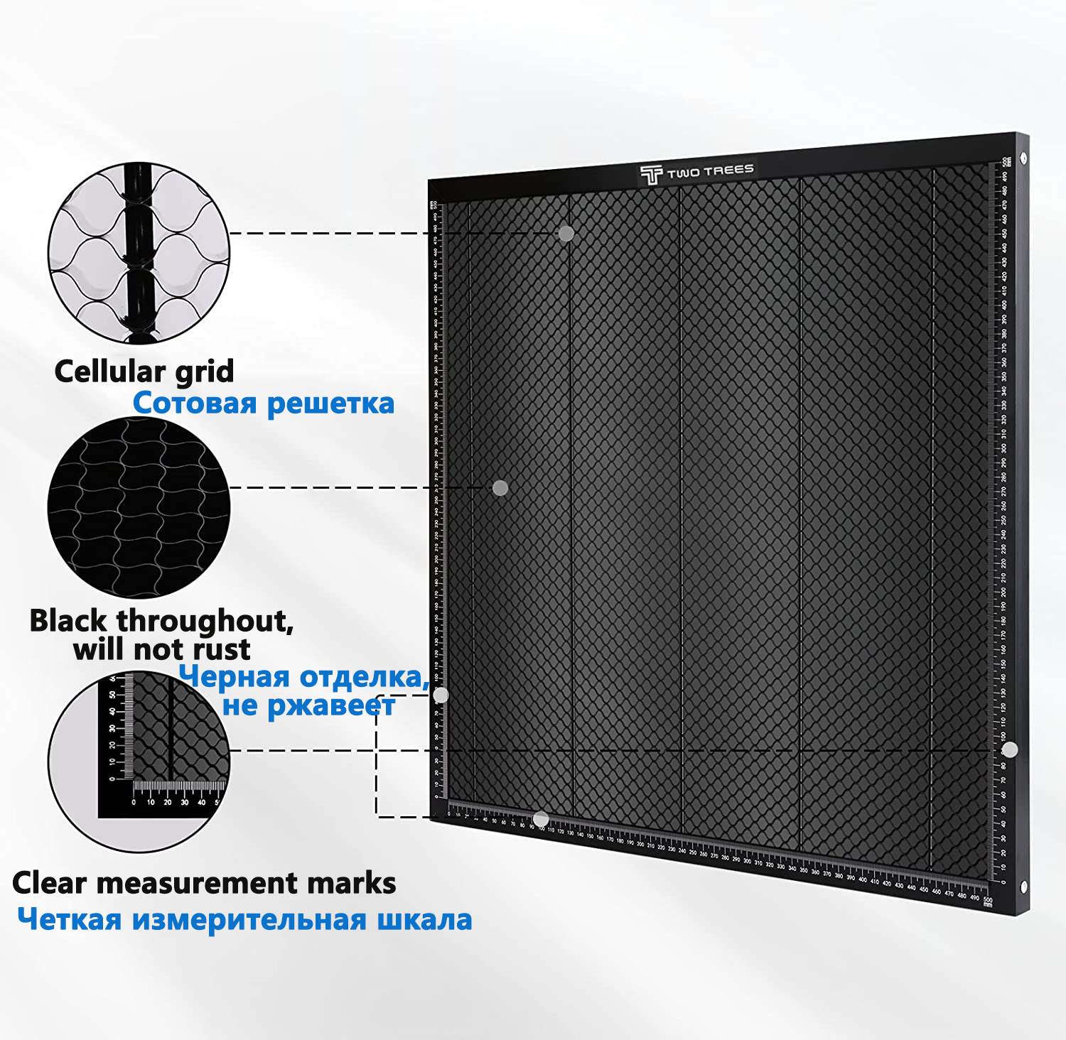 Сотовая решетка для оптимального потока воздуха во время резки. Это поможет контролировать температуру разрезаемой детали, быстрое охлаждение. Это уменьшит любое курение, сажу или деформацию предмета, над которым вы работаете. Это действительно уменьшает дым и образование камня на задней части изделия при резке, обеспечивает лучшее качество сборки.
