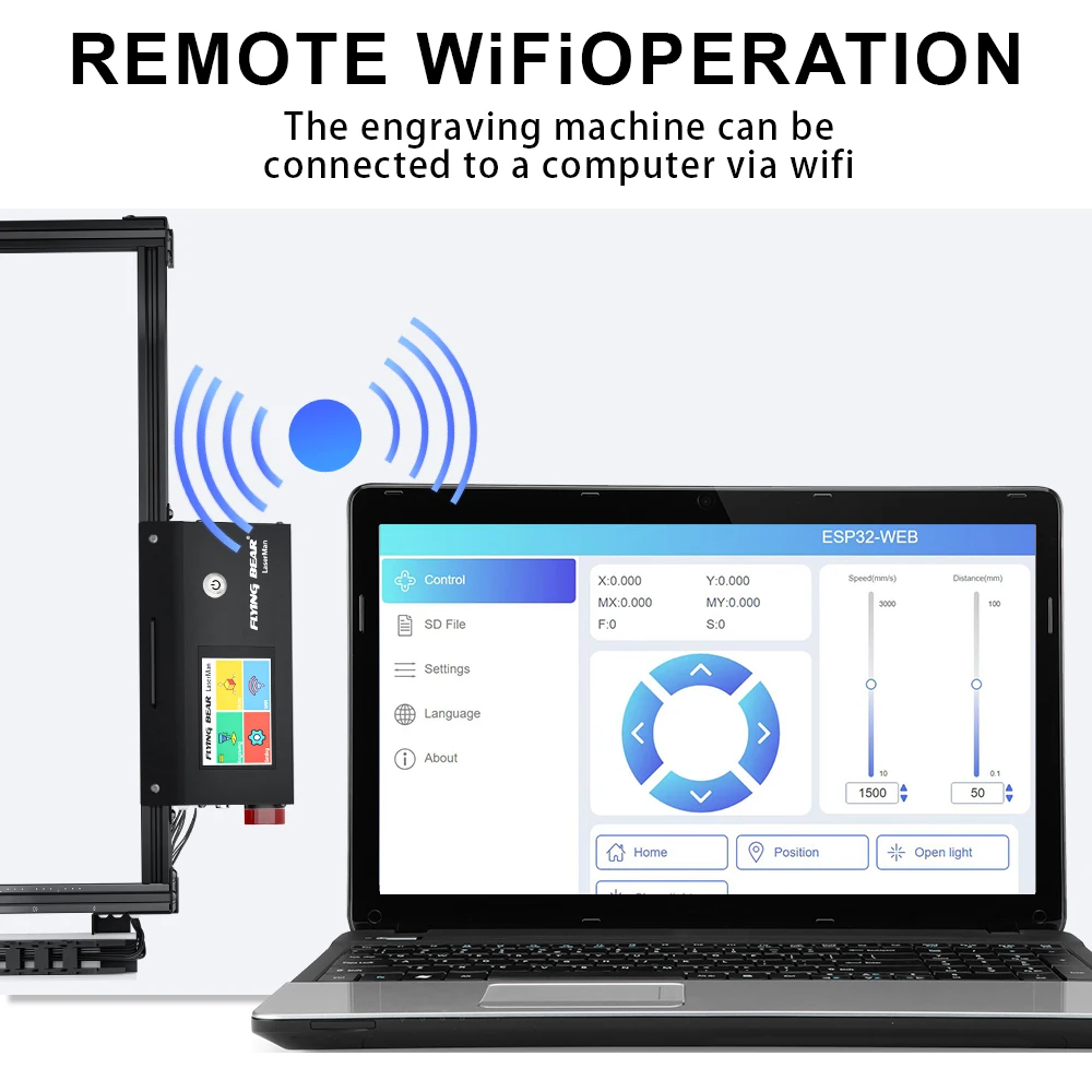 3. Функция WiFi:Управляйте гравировальным станком через веб-страницу, переносите гравировальный файл, работа удобна и эффективна.