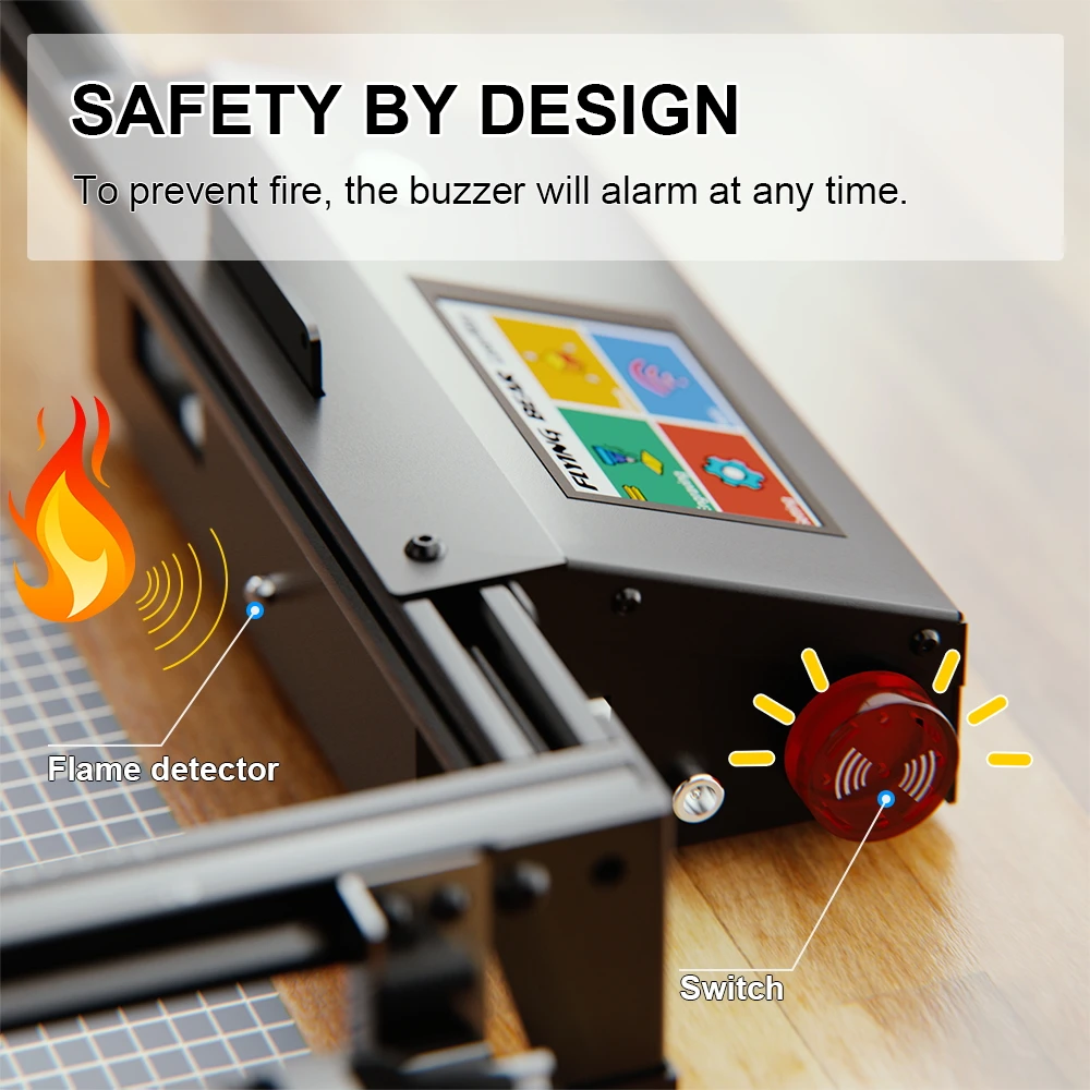 8. Обнаружение пламени: Если во время процесса гравировки произойдет пожар, станок автоматически подаст сигнал тревоги и отключит питание.