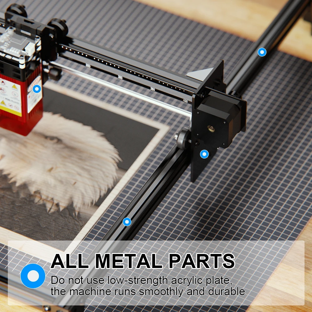 4. Новейший лазерный модуль: Выходная мощность лазера до 5,5 Вт, сжатое пятно 0,08x0,1 мм, он может резать фанеру 3 мм и Сосновую доску 6 мм за один раз.